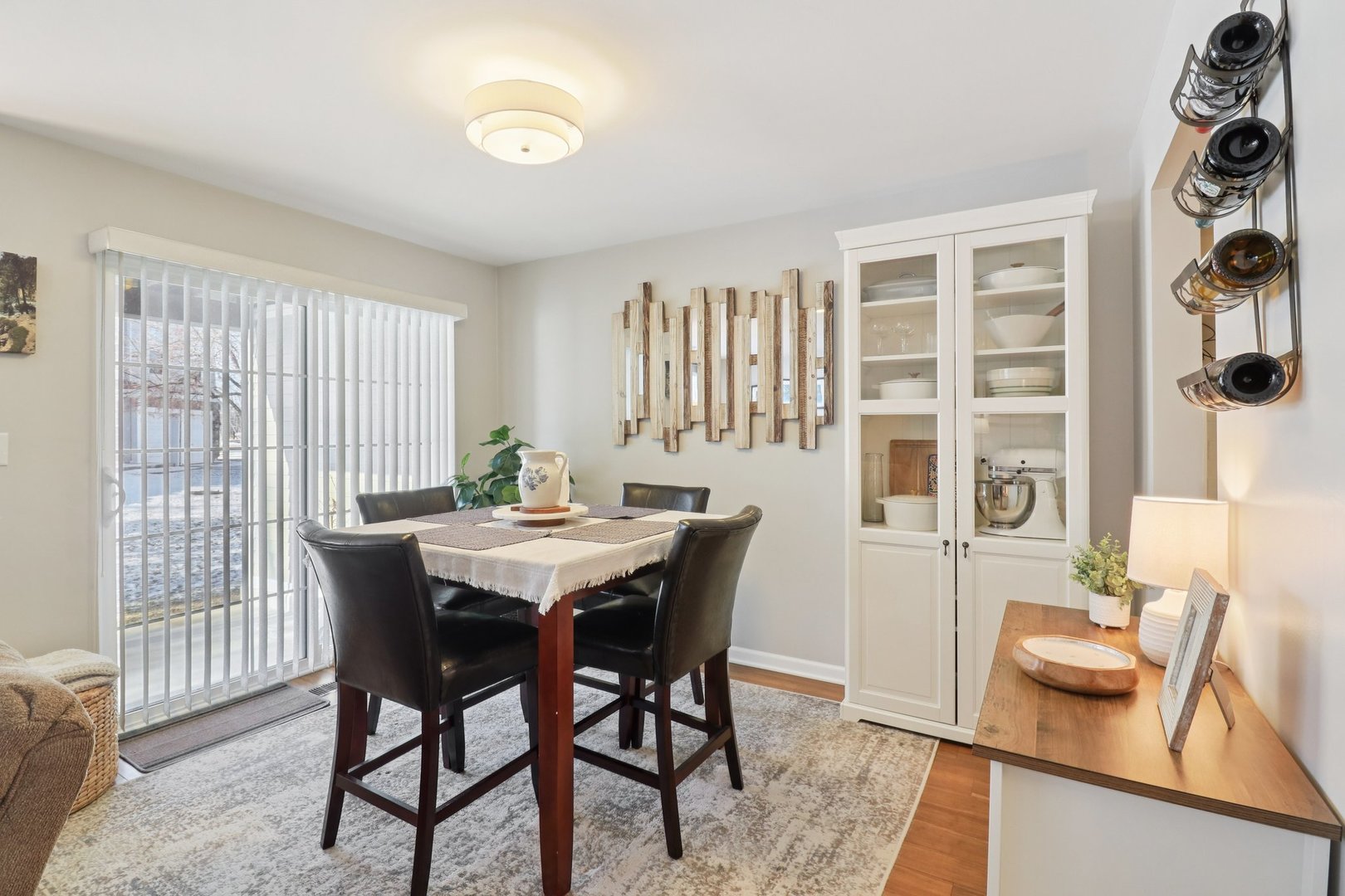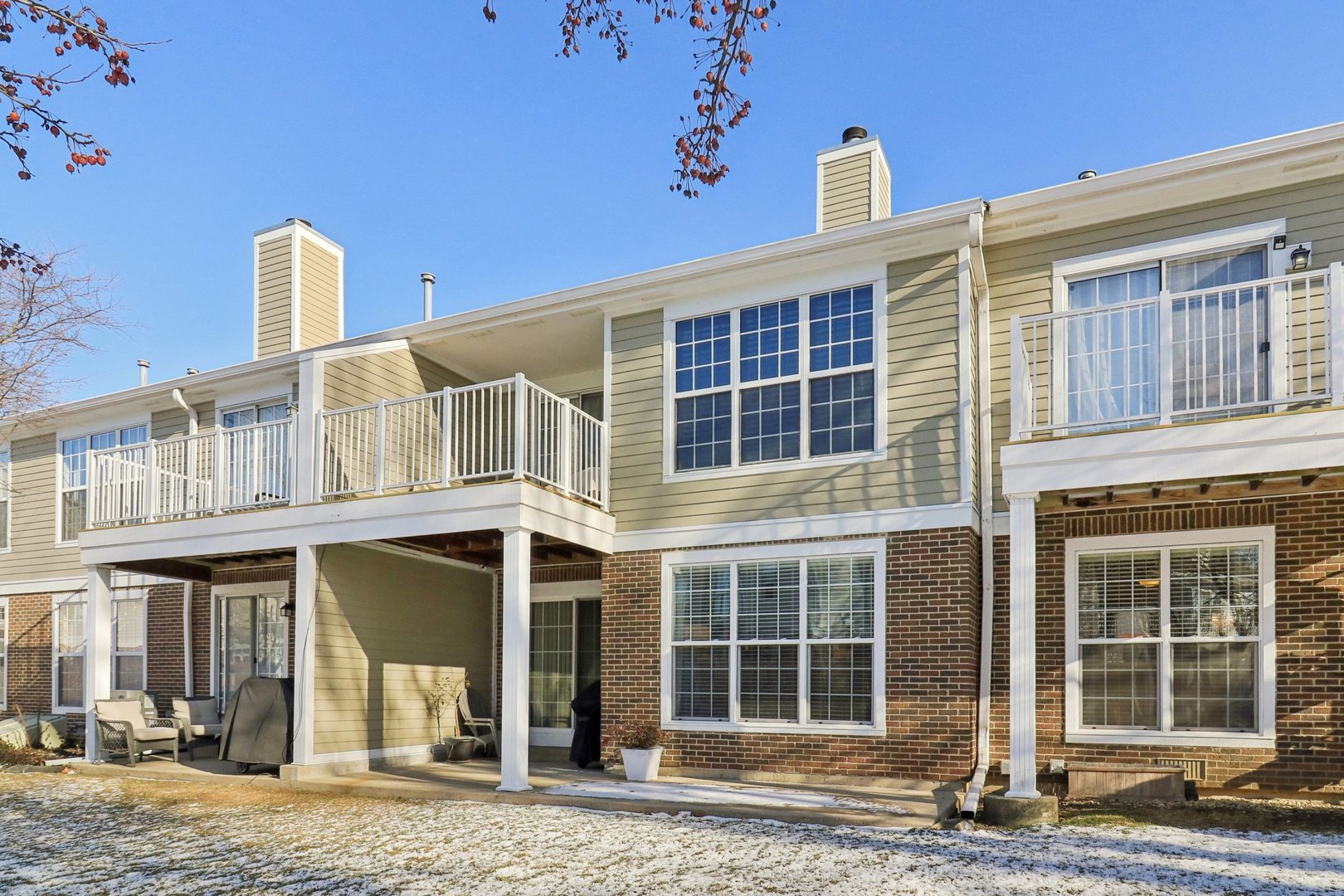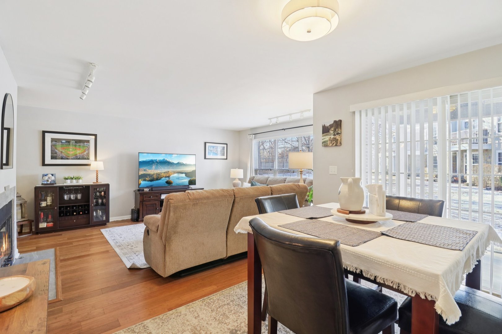 Welcome home to this beautifully maintained 1st-floor lifestyle home offering 1,278 square feet of comfortable, light-filled living in a highly desirable Vernon Hills location within the Adlai E. Stevenson High School District. Designed for easy living, this home includes a 2-car garage and a spacious covered private patio overlooking a peaceful, grassy knoll. The spacious eat-in kitchen features stainless steel appliances (2018) and opens to a formal dining area, ideal for everyday living and entertaining. The inviting family room with gas fireplace enjoys western exposure, providing abundant natural light and tranquil outdoor views. The fireplace features a newly installed pilot light operated by a wall switch for added convenience. The large primary bedroom includes a floor-to-ceiling luxurious tile walk-in shower with a seamless glass door, while the hallway bathroom offers a tub/shower combination. The adjacent second bedroom is perfect as a bedroom, home office, or guest room. Additional highlights include hard surface flooring throughout, in-unit laundry with gas dryer, Central Air (2024), furnace (2017), water heater (2017), and a building with new siding (2024). Enjoy a prime location just 5 minutes from the Vernon Hills Metra Station, with quick access to downtown shopping, dining, and entertainment, and walking distance to the Gross Pointe walking path and park, plus a brand-new neighborhood park added in 2025. Pets are allowed; rentals are not permitted. The HOA covers water, garbage and recycling, snow removal, and exterior maintenance, offering truly low-stress ownership. This home has been meticulously cared for, thoughtfully updated, and is move-in ready.