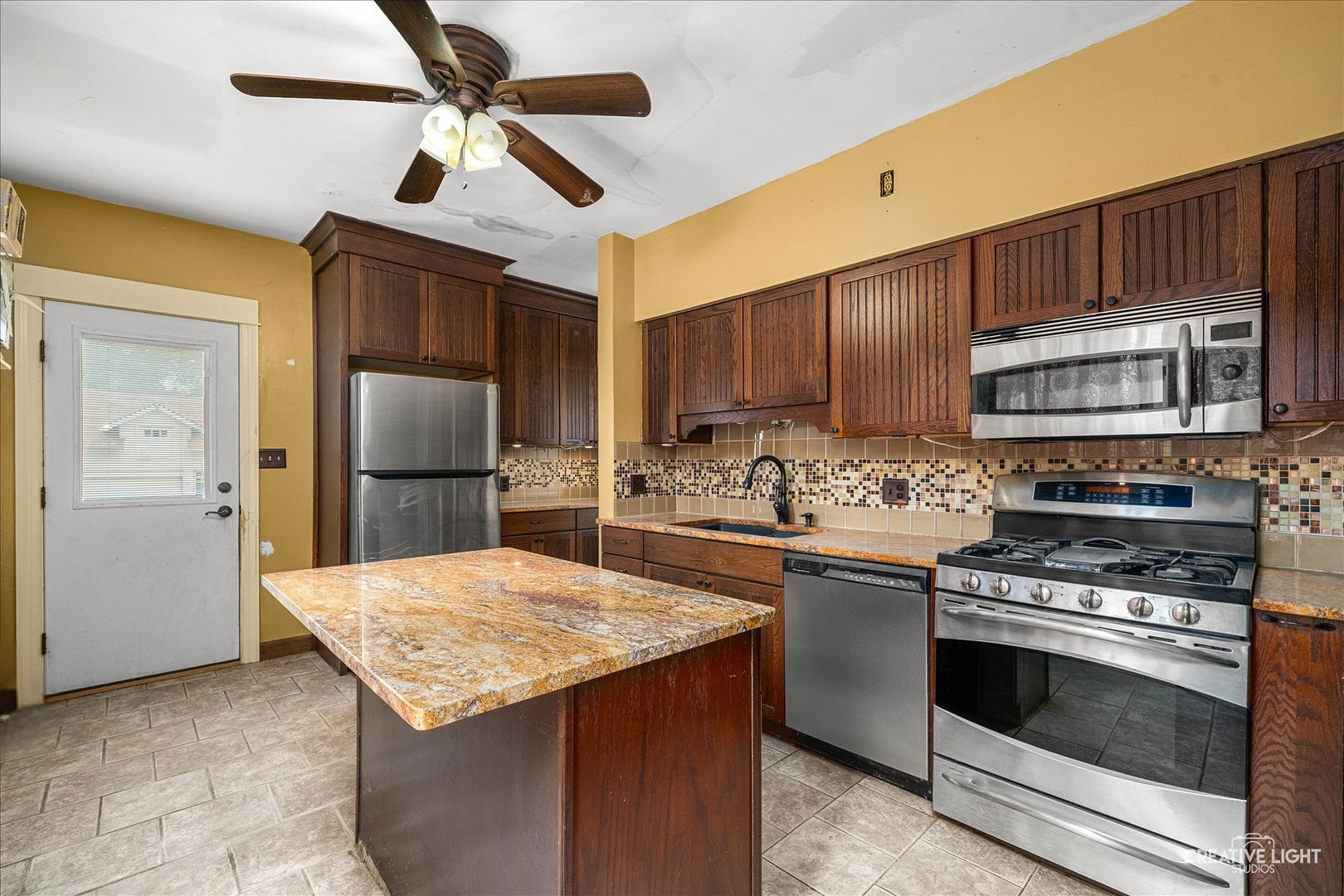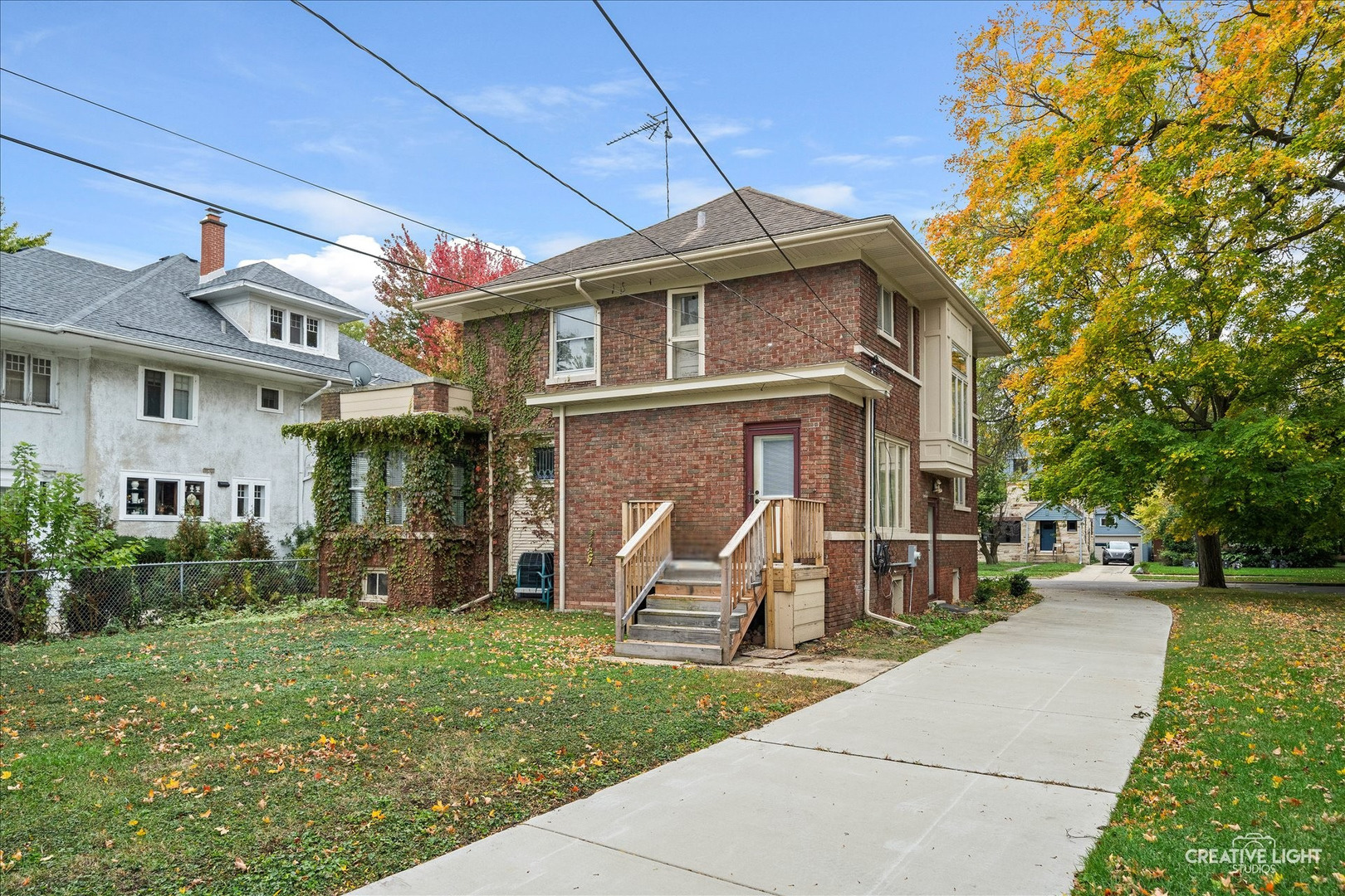 OPPORTUNITY IS KNOCKING! Great chance for buyers, rehabbers or investors willing to put some sweat equity into a home with amazing potential! All brick home on Downer Place in the heart of West Aurora on a rare approx 1/2 acre lot features beautiful original architectural details, charm & character. Welcoming front porch. Amazing woodwork includes extensive trim, hardwood floors, built-ins & mouldings. Wonderful space with larger rooms. Kitchen with island, granite counters & stainless steel appliances. Off the foyer is a large living room with built-ins, fireplace & crown moulding. The dining room features crown moulding, wood panel moulding, beamed ceiling detail, beautiful built-ins, stained glass detail & hardwood flooring. French doors in the dining room lead to the wonderful heated sun room. 1st floor den/office with built-in bookcase is located just off the foyer & has access to the back hallway. 1st floor powder room. 3 bedrooms on the 2nd floor, as well as the recently updated full bath. All bedrooms feature hardwood flooring. Several bedrooms have walk-in closets. 2nd floor hallway features hardwood flooring, walk-in closet & built-in cabinetry. Also in the 2nd floor hallway is access to the walk-up attic. Unfinished basement with storage room & 1/2 bath (stool: not counted in bathroom count). Water softener is rented. Newer concrete driveway leads to the 3 car garage with newer garage roof. Newer deck. Additional recent improvements: New Dryer 2025, New Furnace 2024, Soffits & Gutters 2024, New Water Heater 2018, New Washer 2017. Ideal location ~ close to schools including Aurora University, Lincoln Park, local elementary schools, local high schools, shopping, dining, Paramount Theatre, Metra & tollway. The property needs work ~ bring your ideas & make this your own. Sold AS-IS.