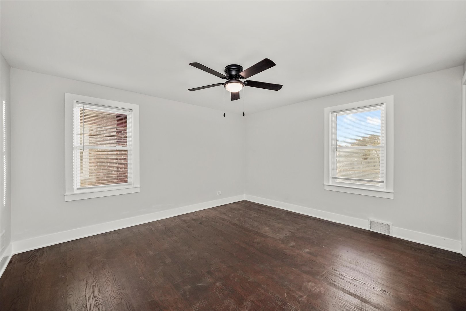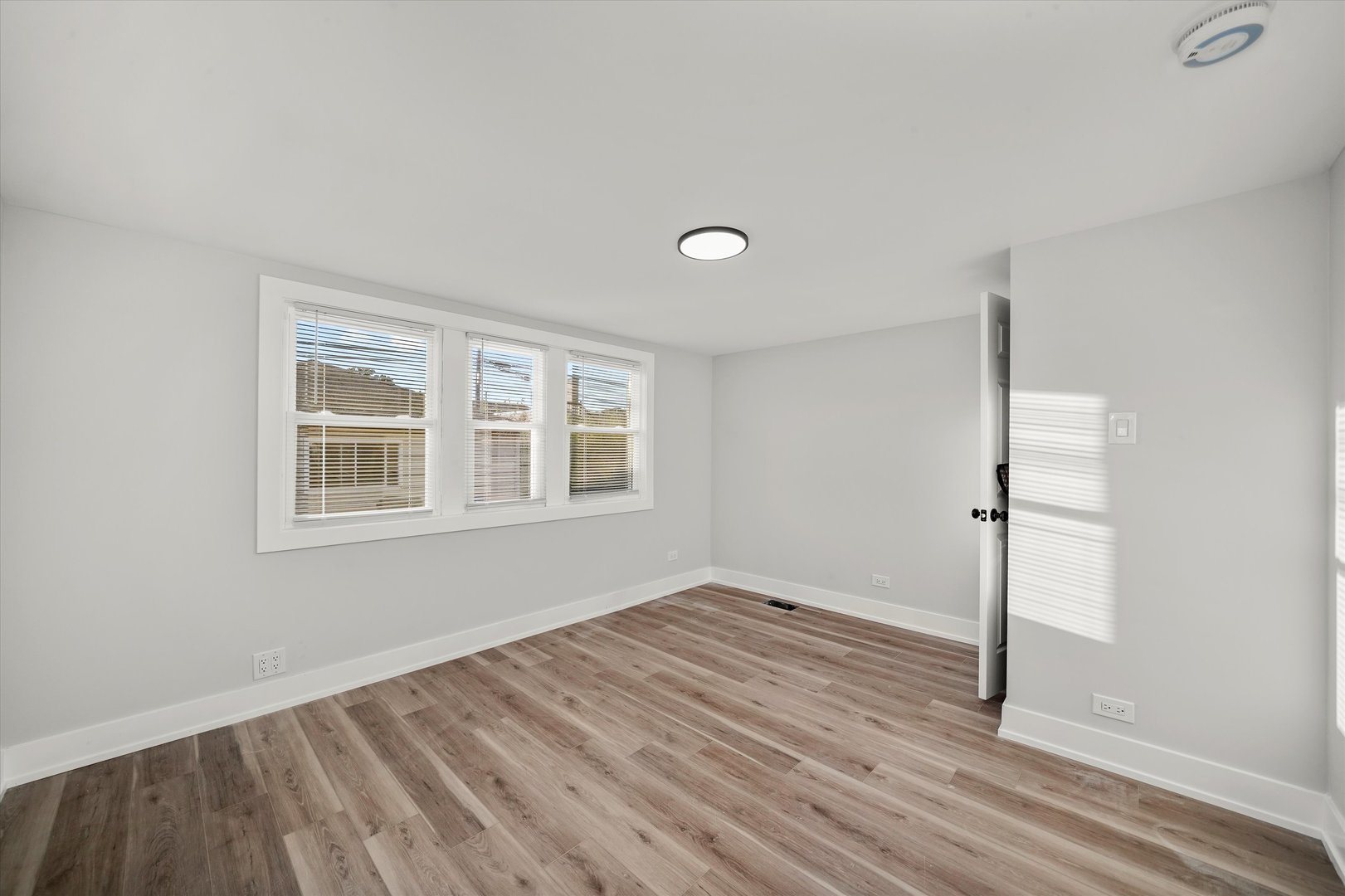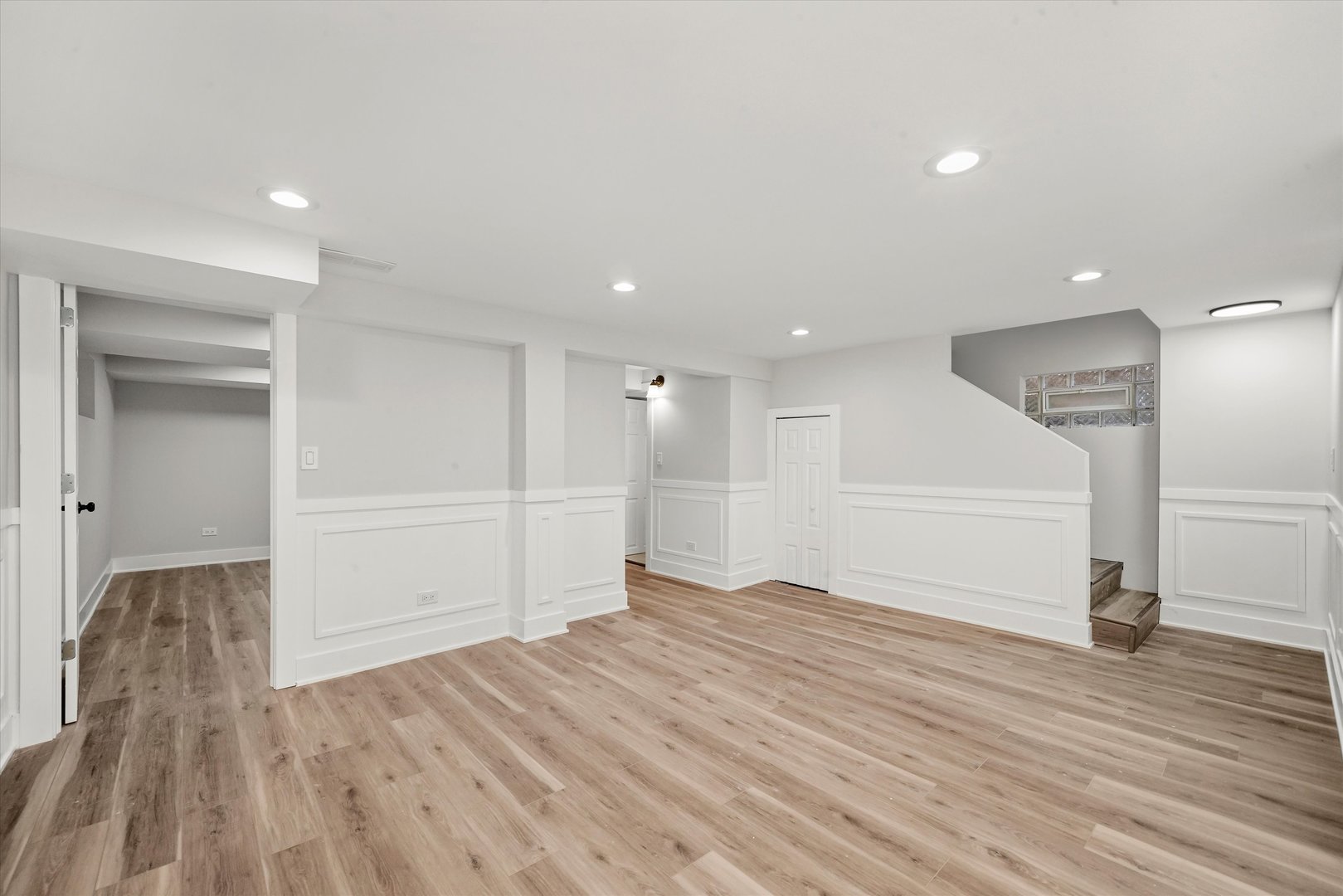 Discover this beautifully updated home, located on a quiet, tree-lined street in Chicago. This charming brick georgian combines classic character with modern upgrades throughout. Step inside to find a spacious living area filled with natural light and LED can lights, shiplap detail wall with fireplace complemented by gleaming hardwood floors and fresh, neutral paint. The updated kitchen features, quartz countertops, subway tile backsplash, white shaker cabinets with crown molding & ample storage space, ideal for cooking and entertaining. The home offers generous sized bedrooms with plenty of closet space and a first floor bedroom as well as a fully updated bathroom with stylish finishes. A finished basement adds extra space for recreation, an office, or a guest suite and a 2nd full bath. The backyard is perfect for gatherings, complete with a fenced in yard and room for a garden or outdoor seating area. This property also includes a 2 car detached garage for convenience. Welcome Home!