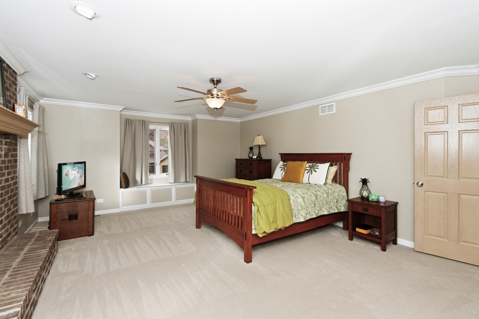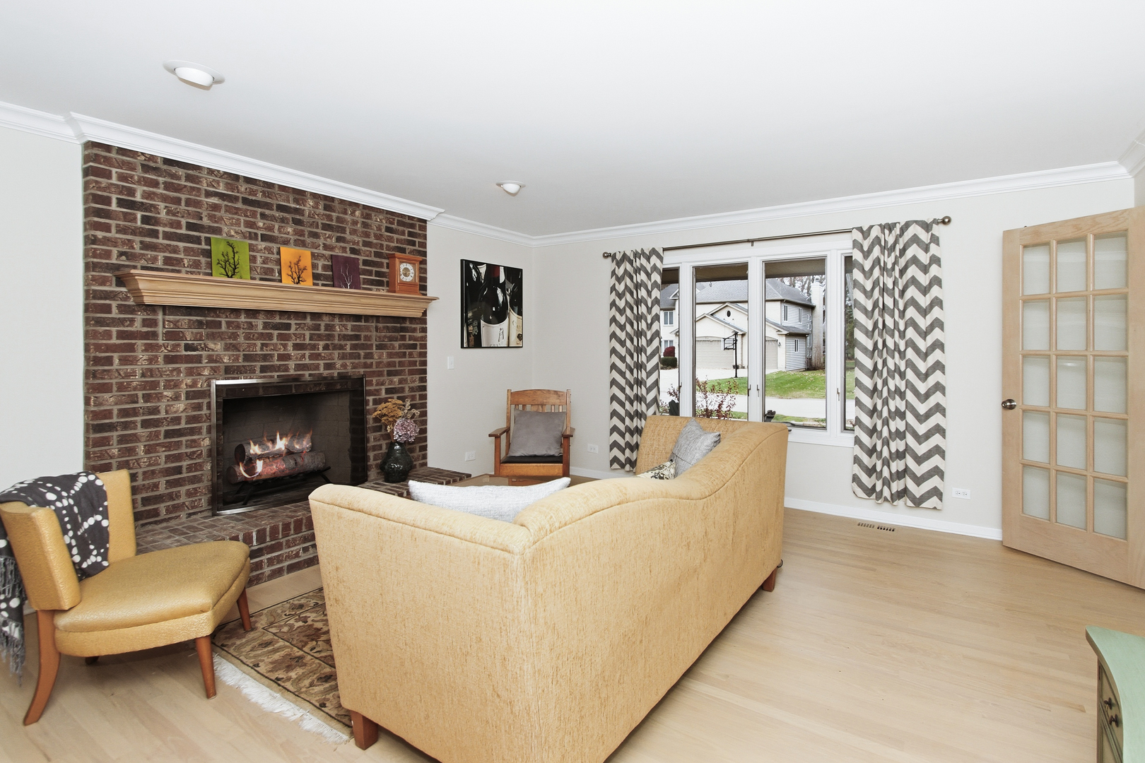 Nestled amongst towering trees, established perennials and backing to Bartlett Hills Golf Course. The house is beautiful and the location is a 10+. From the moment your guests enter the two story foyer with curved staircase they will be impressed. Hardwood oak floors and trim and a first floor bedroom/den with a full bath is a big plus. The kitchen overlooking the family room has stainless appliances, quartz countertops and a breakfast bar. The sun filled eating area is surrounded by windows for the most incredible views all year long. Three fireplaces: one is in the BIG master suite/ with big walk in closet and updated bathroom. The FULL basement has a spacious area for entertaining and a huge storage room. Another convenient feature is there are steps from the garage to the basement. Ready for some outdoor entertaining? Relax on the front porch or out back there is a big deck, paver patio and a firepit all overlooking the beautiful tree lined golf course. Just a few of the extras include updated bathrooms and a composite roof in 2020.