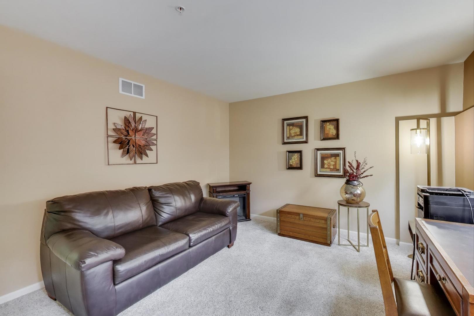 Extremely well-maintained and move-in ready, this spacious 3-bedroom townhome offers the perfect blend of comfort, style, and convenience. The main level features hardwood floors, a bright and welcoming living room with three large windows, and a Bose surround sound system. The extra-large kitchen stands out with new quartz countertops, a new sink, a water-filtration system, and refreshed cabinetry. An oversized island and generous space for a dining table make this the ideal setting for cooking, hosting, and everyday living. Just off the kitchen, enjoy an inviting balcony with newly installed modular outdoor flooring-perfect for grilling, relaxing, or your morning coffee. Upstairs, both bedrooms include walk-in closets and private ensuite bathrooms, offering exceptional comfort and privacy. The home also provides two additional half baths, ample storage throughout, and a large 2-car garage. Located in a highly sought-after, scenic subdivision, the property is surrounded by mature trees that create a peaceful, private atmosphere. A walking path directly behind the home enhances the serene, nature-filled setting. Truly a rare find! Beautifully maintained, generously sized, and set in an idyllic community. Don’t miss this one!