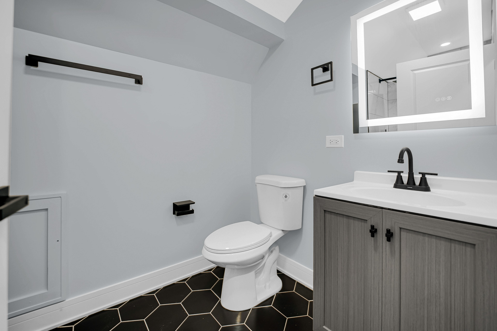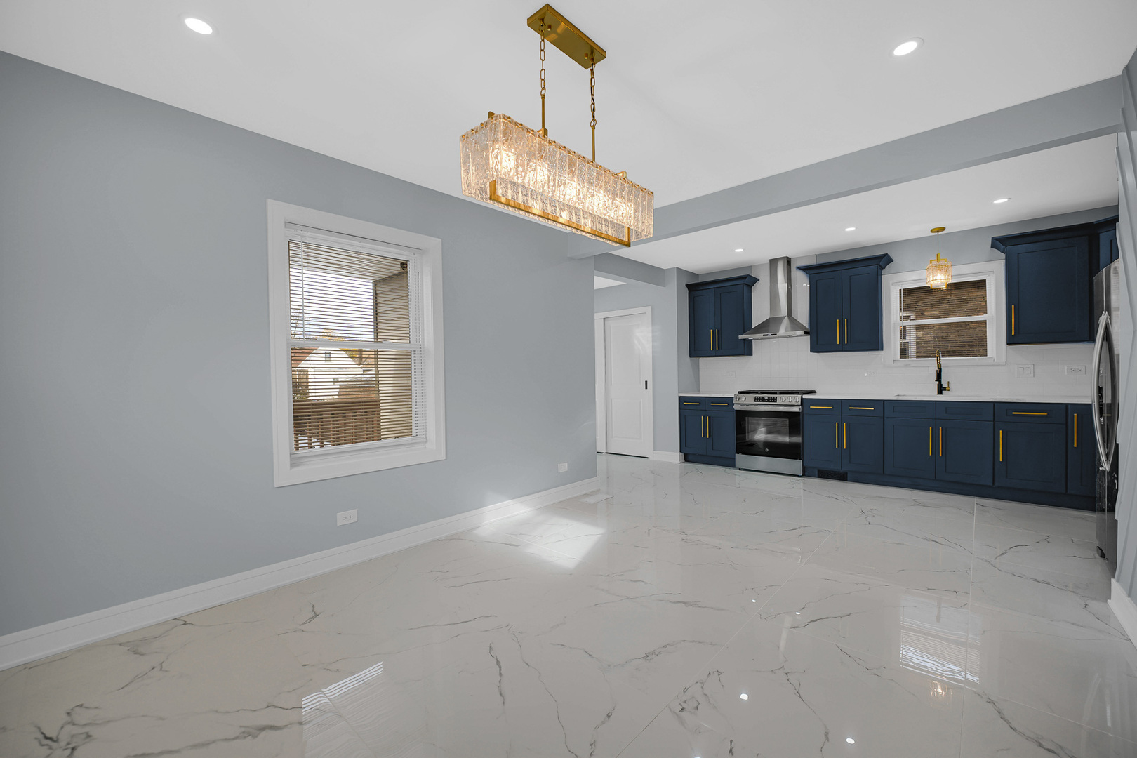 Welcome to this beautiful gut rehab on a corner lot with 3 completely refinished levels. Featuring new flooring throughout, most windows, a/c, privacy fence, recessed lighting, light fixtures, above ground walls, electric, plumbing, doors, light switches and outlets. Open concept kitchen/dining room combo, highlights include new deluxe shaker soft close cabinets/drawers, marble countertops and marble floor, subway tile backsplash, elegant light fixtures and new stainless steel appliances. Modern french doors with glass enclosed blinds open to large deck and backyard. 3 completely new deluxe bathrooms. Doors to be installed on walkin showers. Full finished basement with plenty of room to add another bedroom. Ample interior storage, exterior shed and newer 2 car garage.