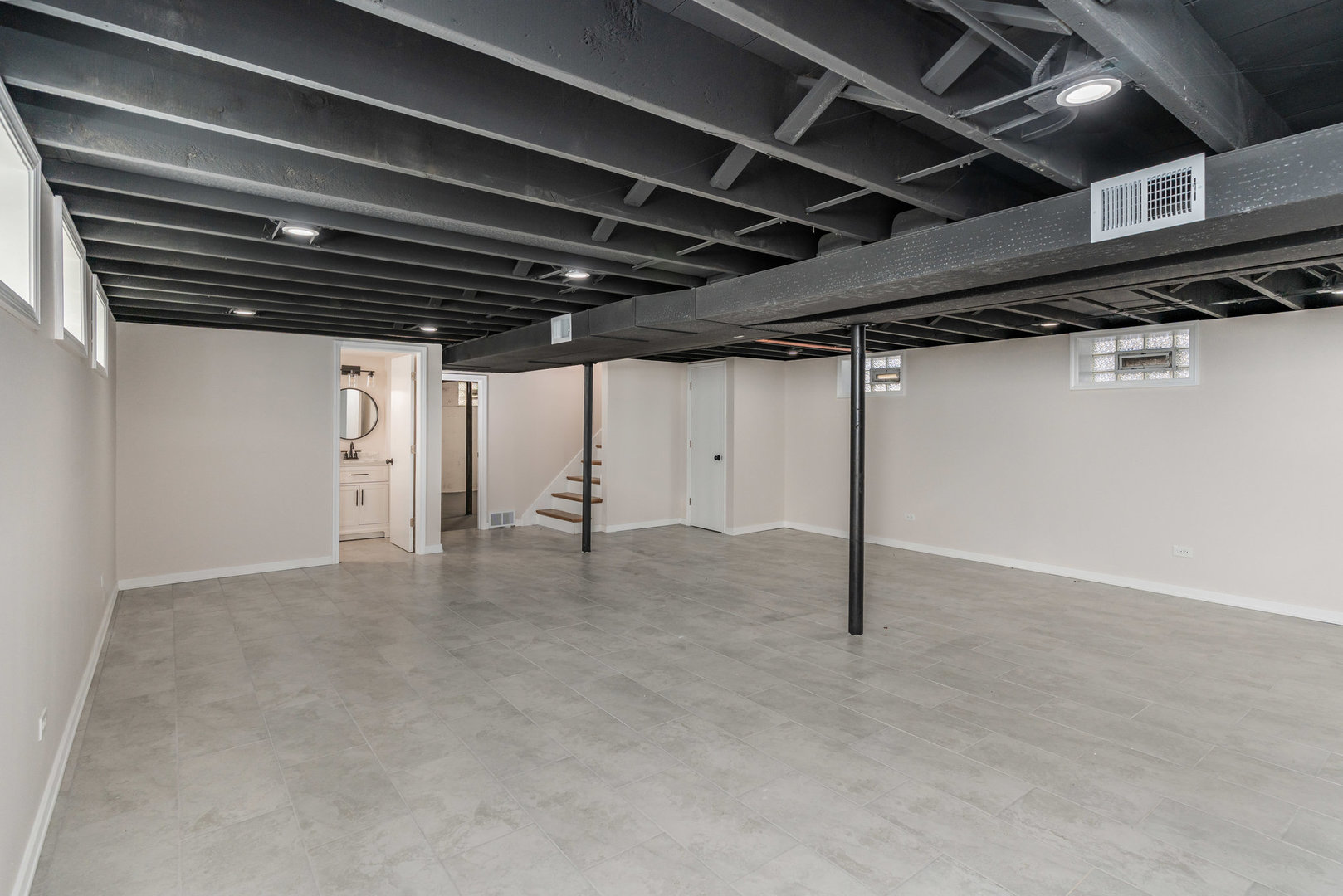 Beautifully updated 3-bedroom, 2-bath brick ranch with a full finished basement. Ideally located in the up-and-coming Washington Heights neighborhood that’s known for its suburban feel, lush parks, diverse population, and dynamic welcoming vibe that appeals to young professionals, longtime residents, and retirees alike. Nestled on an oversized, fully fenced corner lot, this home offers abundant space for outdoor entertaining, gardening, or play. Step inside to discover a gorgeous, fully renovated kitchen featuring 42″ white cabinetry, quartz countertops, stainless steel appliances, and refinished hardwood floors that flow seamlessly throughout the main level. The sunlit living and dining rooms provide the perfect backdrop for both relaxing and entertaining. Three spacious bedrooms and a stylishly updated full bath complete the main floor. The fully finished lower level adds even more versatility, boasting a large family room, a second beautifully remodeled full bath, plus laundry area and ample storage space. Enjoy peace of mind for years to come with numerous recent upgrades including a new roof, soffits, gutters, A/C, most windows, updated plumbing, vanities, cabinetry, lighting, flooring, and fresh paint throughout. Located within walking distance to parks and schools, minutes to I-94/57 and 12 miles from the loop making for an easy commute – this home blends modern living with unmatched convenience.