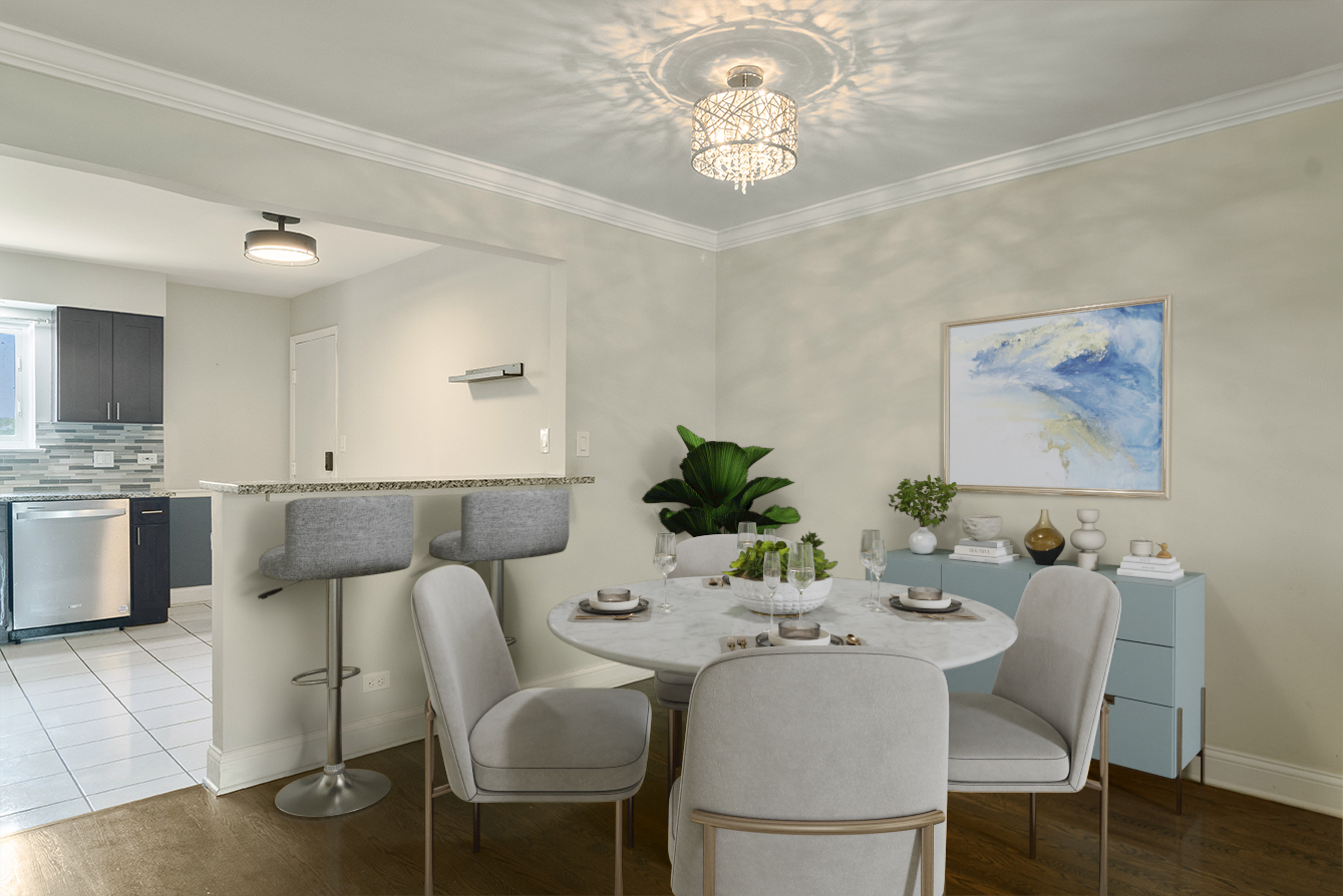 Welcome to Bay Colony! This top floor condo features 2 spacious bedrooms, a full bath and is located in prime area within the community offering amazing views of the pond from the kitchen and primary bedroom. Highlights include hardwood floors in the living room, dining room and both bedrooms. The remodeled kitchen boasts granite counters, stainless steel appliances, new cabinets, breakfast bar and table space. The spacious living room has plenty of natural sunlight from the oversized sliding doors leading to the balcony overlooking beautiful green space. Perfect for an active lifestyle, you will appreciate the community amenities including the outdoor pool, tennis courts, basketball court, clubhouse, playground and walking path around the pond. Includes complimentary laundry on the main floor, an assigned parking space and plenty of guest parking. All this plus pet friendly and investor friendly too – rentals are allowed! Don’t miss the opportunity to own or invest in this super convenient condo in a prime location near expressways, area hospitals, bus transportation, shopping, dining, schools & more. Welcome Home!