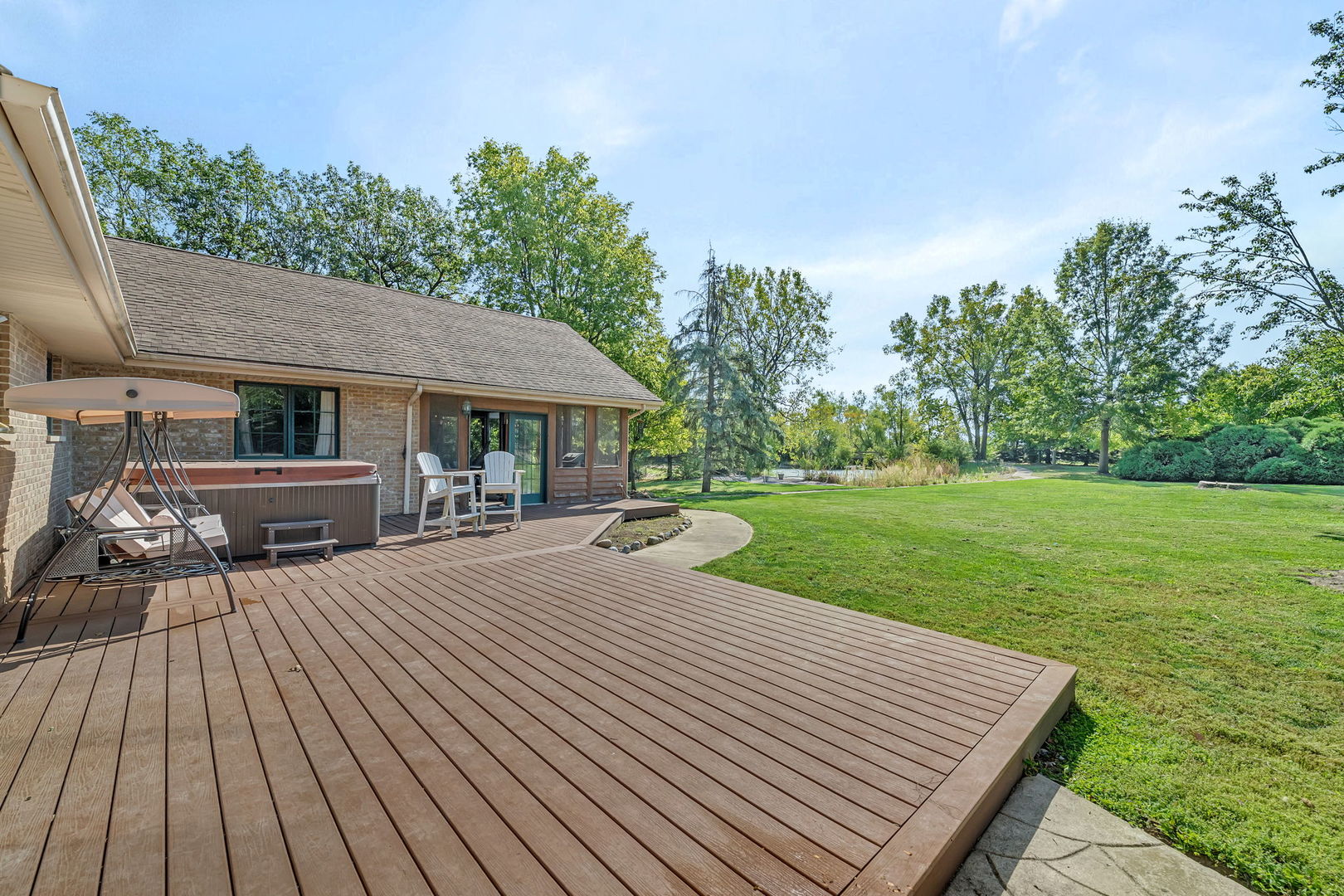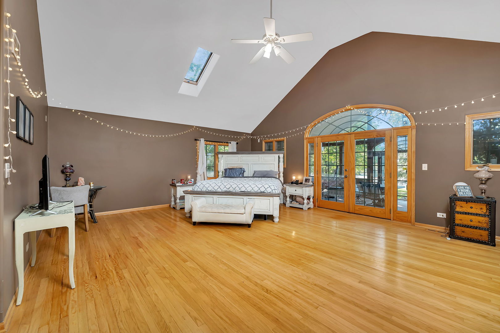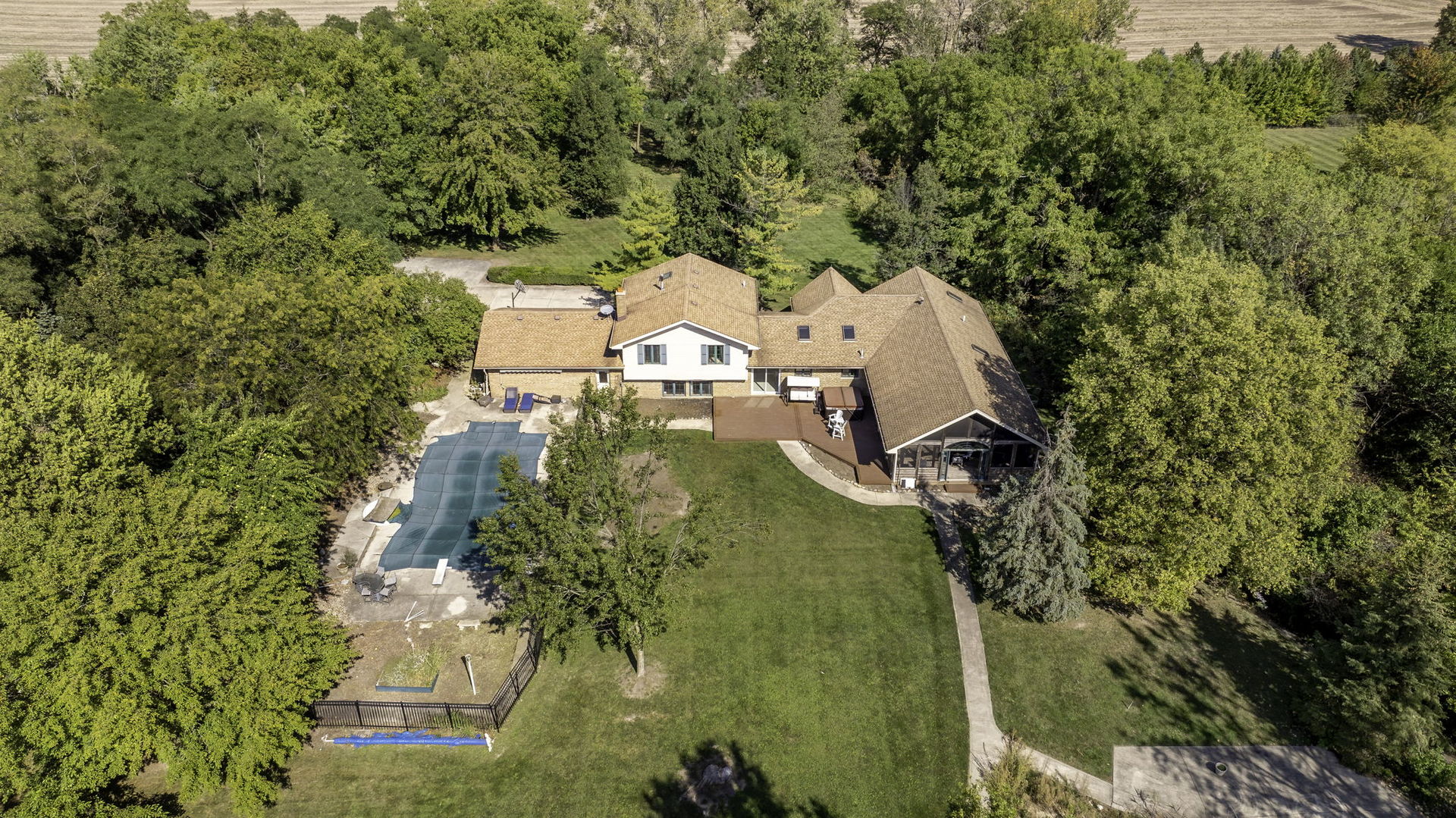 Experience luxury living at its finest in this stunning Frankfort estate set on over 5 acres. This custom-designed home features 4 bedrooms, 3 full bathrooms and a finished lower level. The primary suite is a true retreat, privately situated on one side of the home and complete with vaulted ceilings, skylights, a walk-in closet and a dedicated office. Enjoy serene backyard views from the screened-in room just off the primary suite. The spa-inspired ensuite includes a double vanity, jetted soaking tub and stand-alone shower. The open-concept kitchen is ideal for both everyday living and entertaining, featuring granite countertops, abundant cabinetry and plenty of room for dining. A large formal dining room creates a seamless flow for gatherings. On the opposite side of the home, the second level hosts three additional bedrooms and a full bath, offering ample space for family or guests. The lower level is designed for entertaining, boasting a spacious family room with a fireplace, a wet bar with stool seating, and direct access to the garage. Outdoor living is equally impressive with a stocked pond, in-ground pool, pool house, horse stalls, and a massive pole barn with an office area -perfect for hobbies, storage or equestrian use. This exceptional property combines luxury, privacy, and function-all within minutes of Frankfort’s charming downtown, dining and highway access. Schedule your showing today!