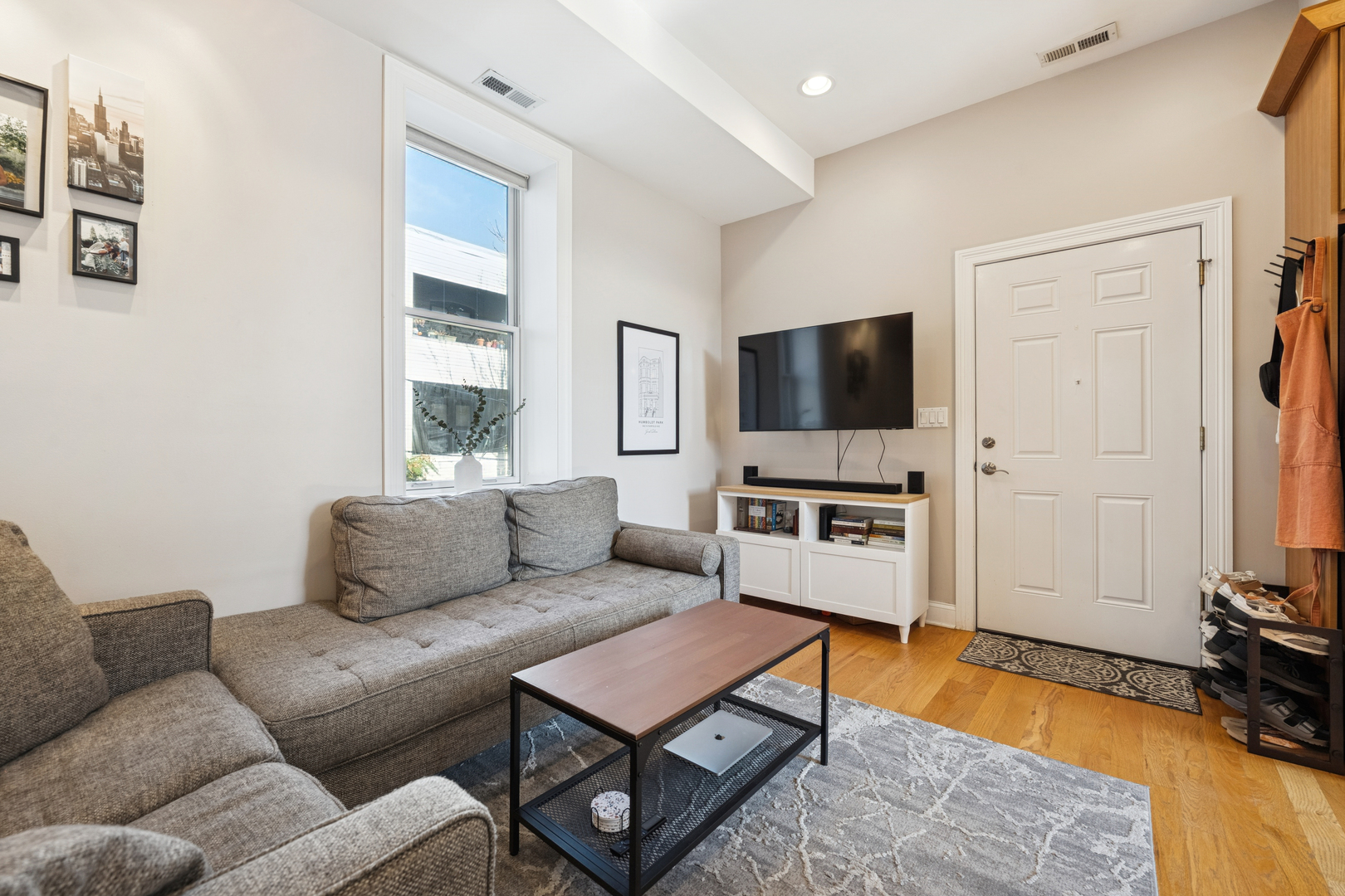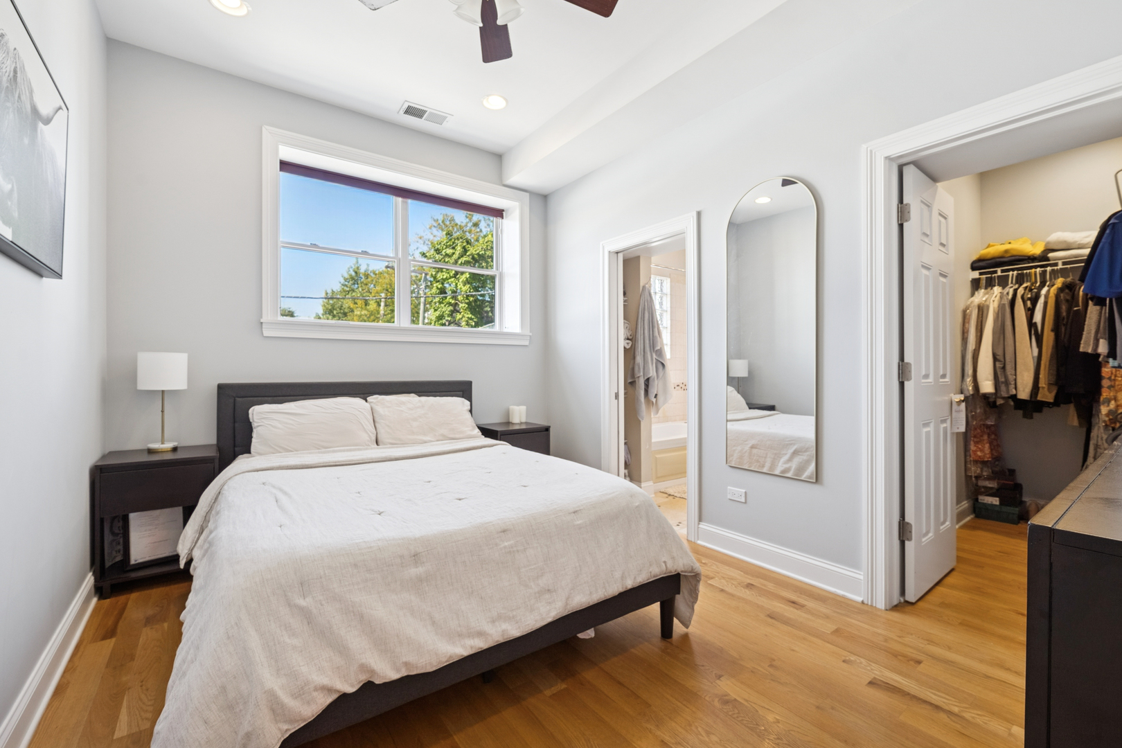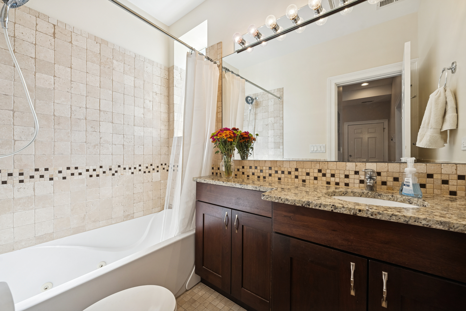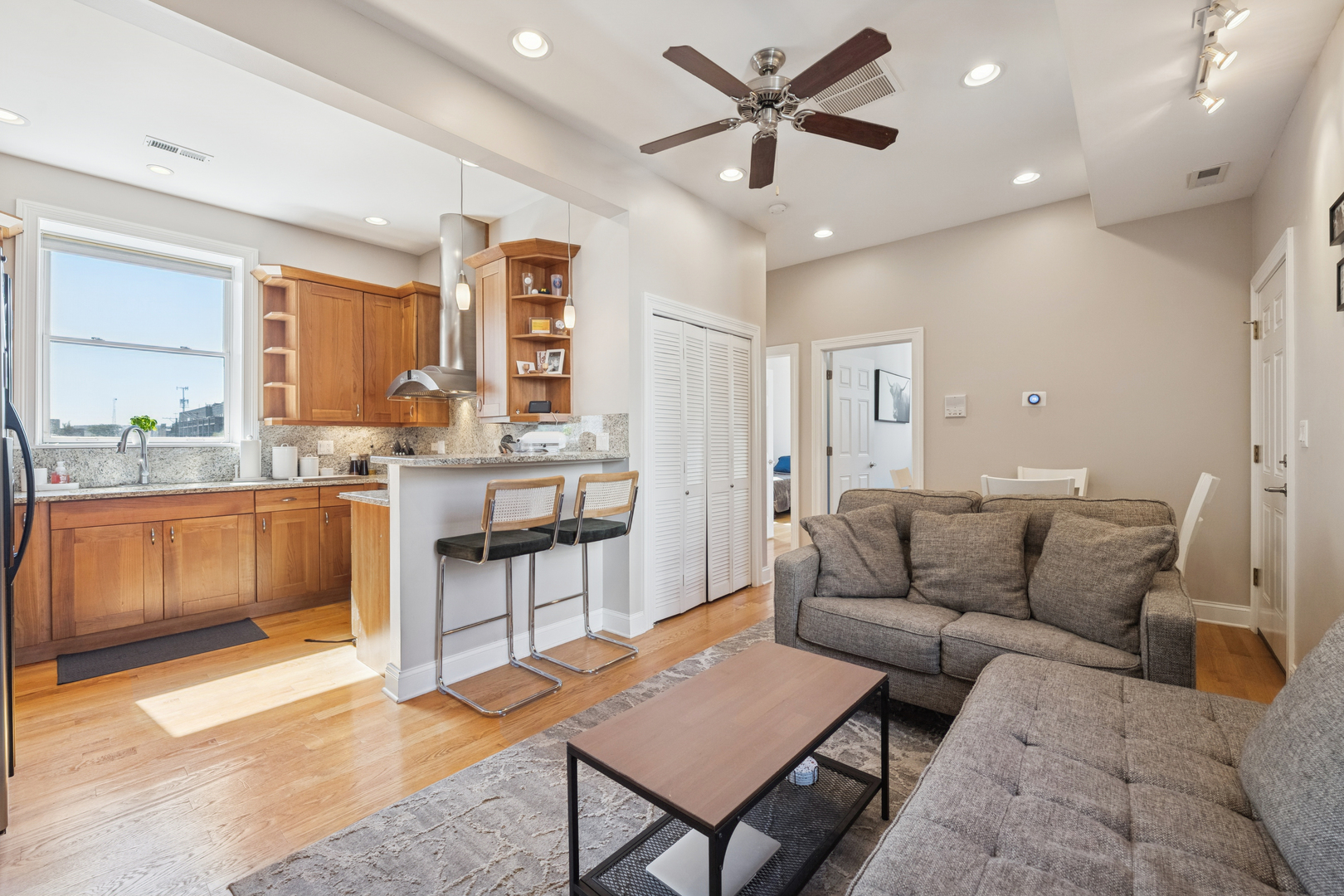 This Ukrainian Village/Smith Park area = condo features a private roof top pace with gorgeous skyline views, designated parking spot, and in-unit laundry. The unit features new Pella windows, hardwood floors, beautiful tile work throughout, and designer kitchen with walnut cabinets, granite counter and matching backsplash, breakfast bar, SS appliances, and externally vented hood over stove. Bathrooms have plenty of counter and storage space, detailed tile work, and jacuzzi tubs in both. HVAC was fully replaced in 2019. Located only one stop away from downtown’s Union Station on Metra which is a 20min walk away. Near the California corridor with lots of resturants and bars, and walking distance to Humboldt Park and Smith Park (with tennis courts, cafe, lagoon, playground, fishing, trails, baseball fields, etc.).