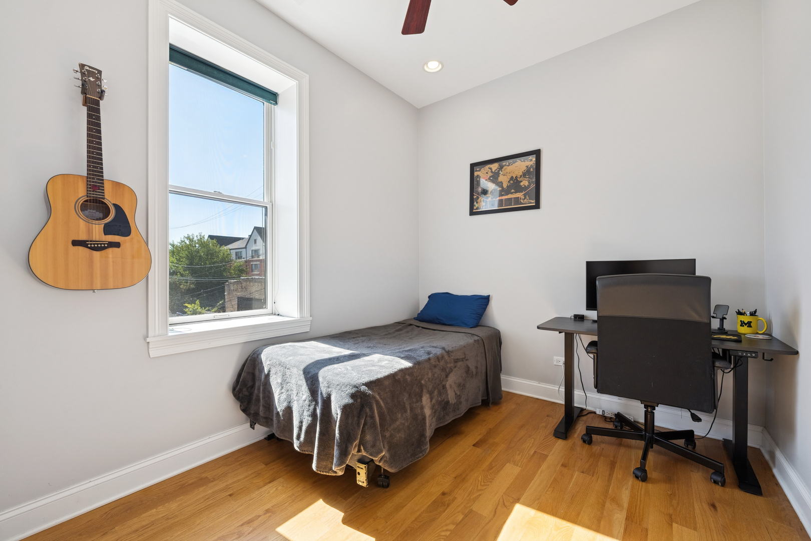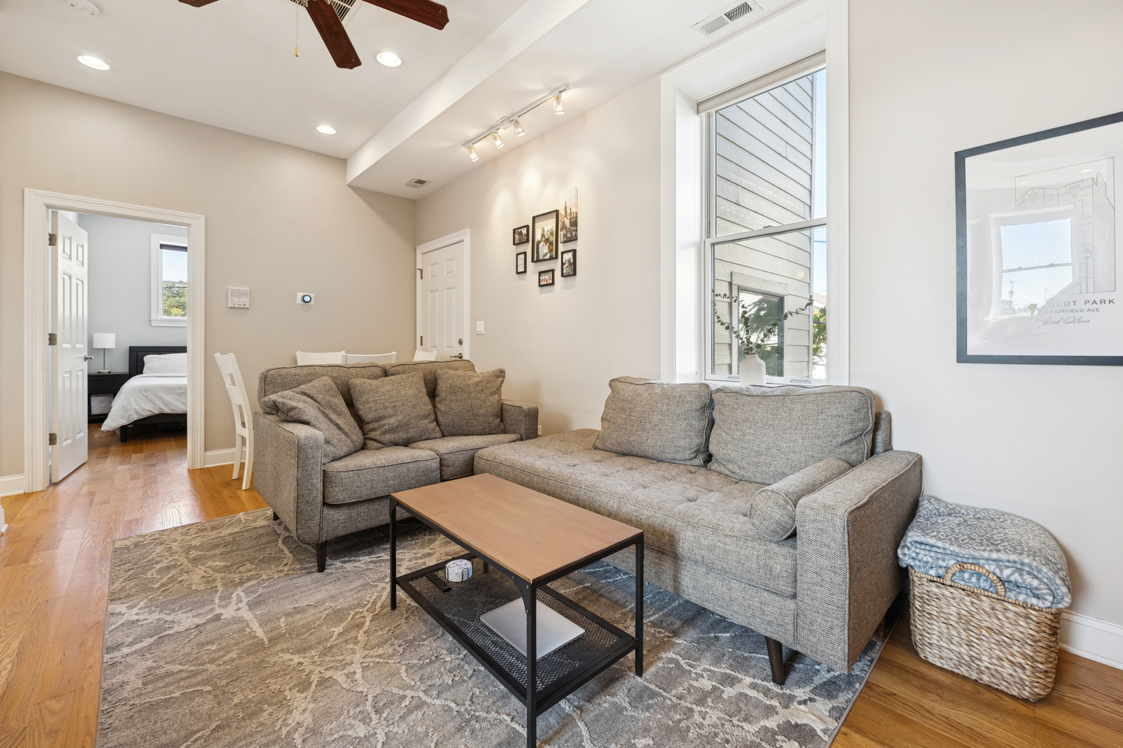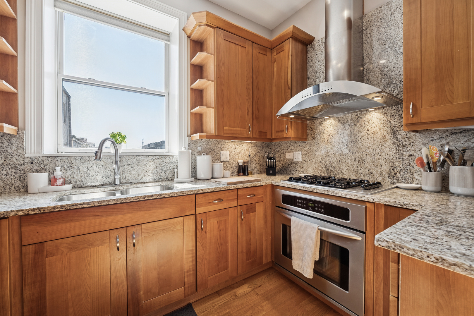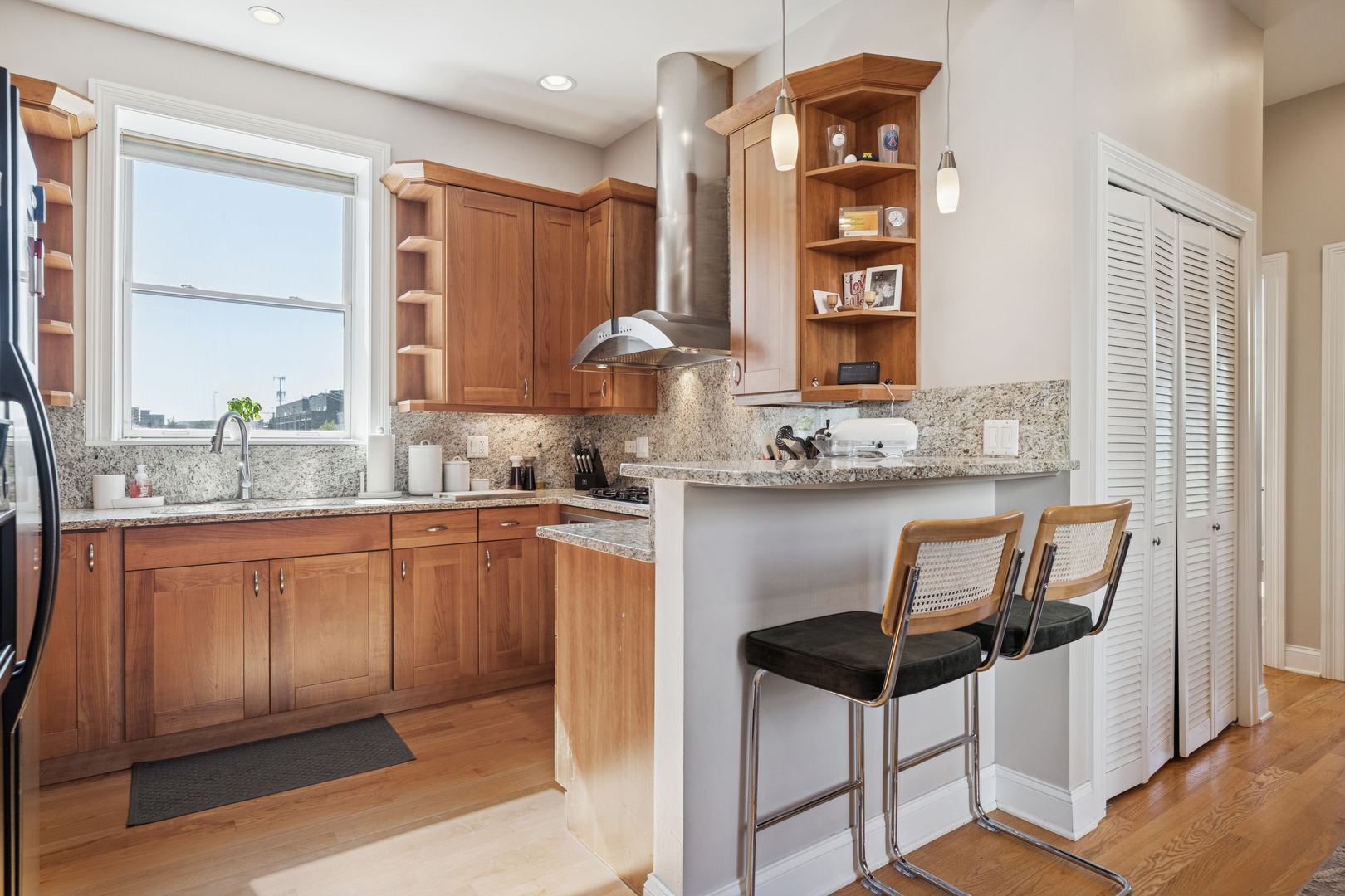 This Ukrainian Village/Smith Park area = condo features a private roof top pace with gorgeous skyline views, designated parking spot, and in-unit laundry. The unit features new Pella windows, hardwood floors, beautiful tile work throughout, and designer kitchen with walnut cabinets, granite counter and matching backsplash, breakfast bar, SS appliances, and externally vented hood over stove. Bathrooms have plenty of counter and storage space, detailed tile work, and jacuzzi tubs in both. HVAC was fully replaced in 2019. Located only one stop away from downtown’s Union Station on Metra which is a 20min walk away. Near the California corridor with lots of resturants and bars, and walking distance to Humboldt Park and Smith Park (with tennis courts, cafe, lagoon, playground, fishing, trails, baseball fields, etc.).