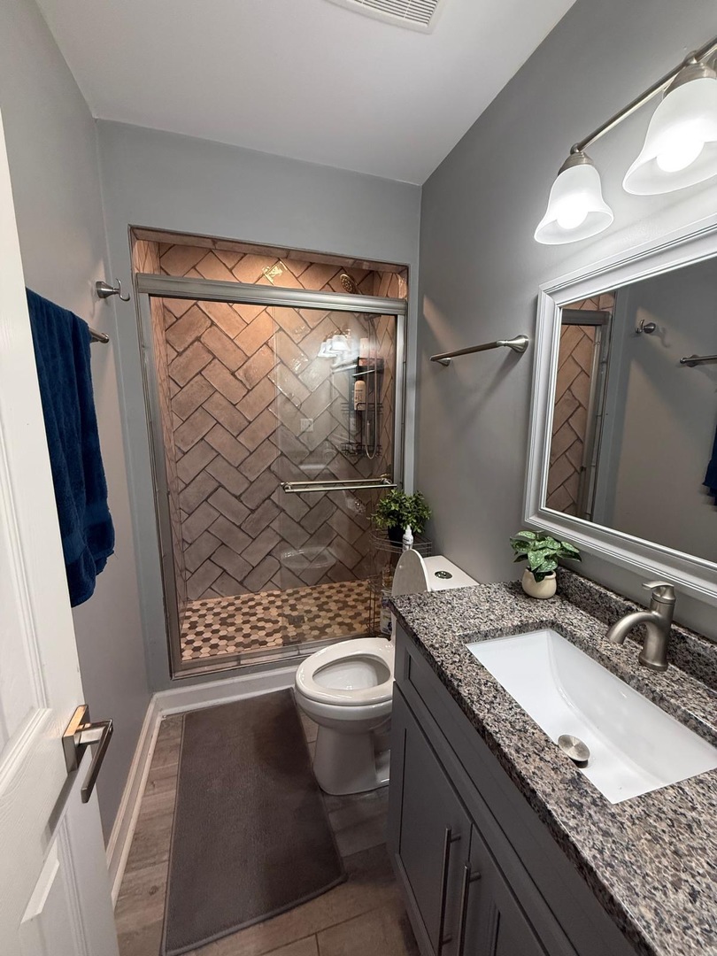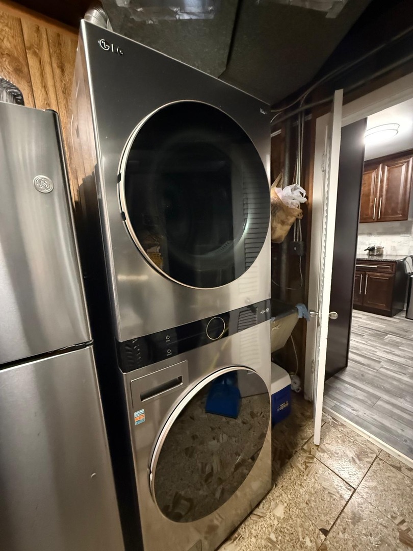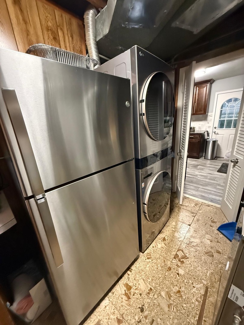 Recently remodeled in 2023, this home features a modern kitchen with granite countertops, stainless steel appliances, and a garbage disposal. A second refrigerator offers additional storage, while the utility room with laundry provides convenience and functionality. Updates throughout ensure a move-in ready property with contemporary finishes.