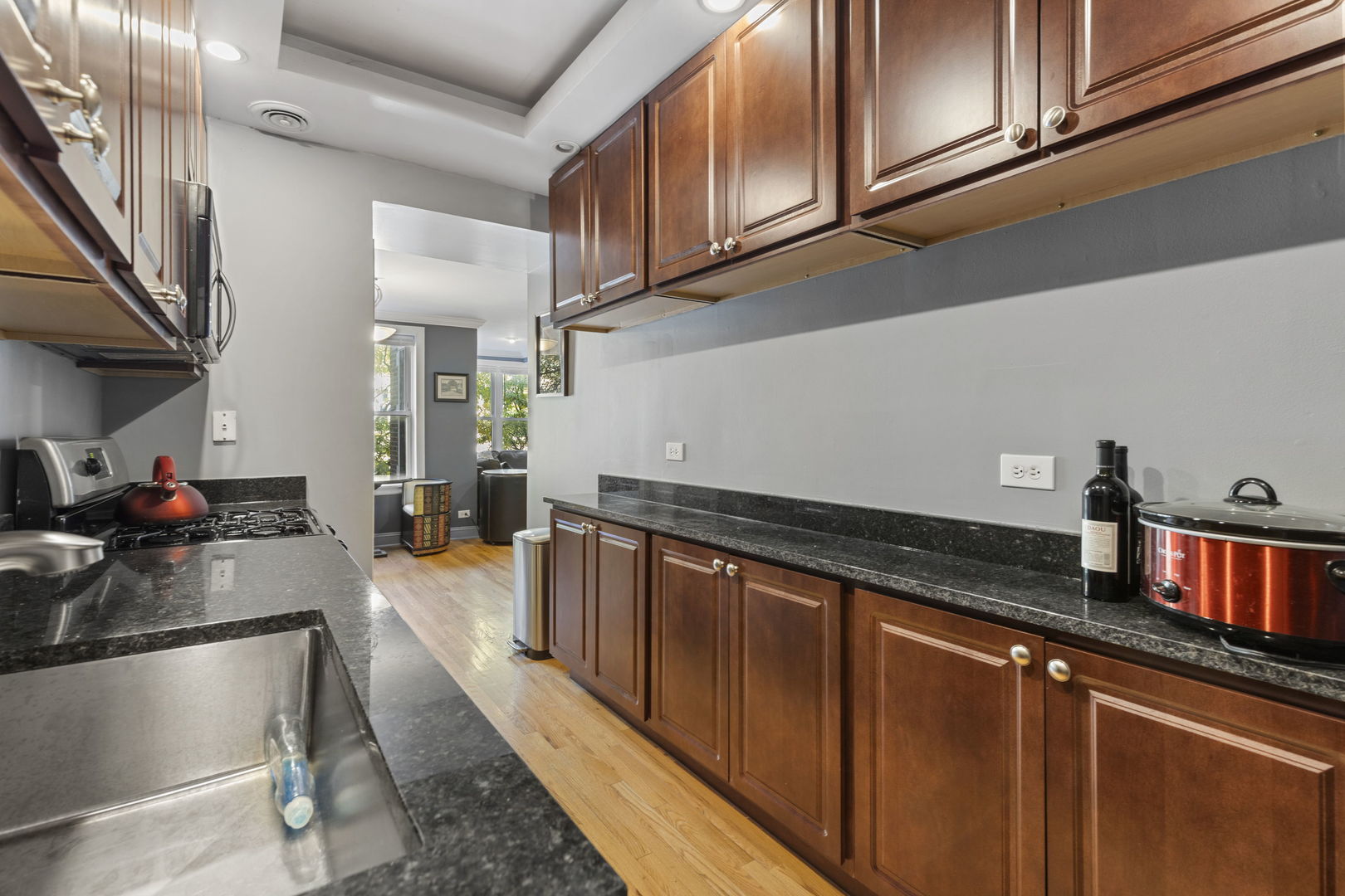 Welcome to this beautifully maintained one-bedroom, one-bath home nestled in the highly sought-after Buena Park neighborhood of Chicago. Located at 945 Gordon, Unit 2W offers a warm and inviting living space with classic hardwood floors throughout. The galley kitchen features sleek new counters and cabinets, providing a functional yet stylish space perfect for preparing meals or entertaining guests. This thoughtfully designed home includes a wood-burning fireplace, adding cozy ambiance during chilly evenings, and a washer and dryer for added convenience. Step outside to enjoy your designated outdoor space, ideal for relaxing or outdoor dining. Ample storage ensures you have plenty of room for your belongings. Living in Buena Park means embracing an active, vibrant lifestyle with easy access to some of the city’s hottest dining and shopping destinations. Savor meals at renowned restaurants like Tango Sur for authentic Argentinian cuisine, Juno for modern American fare, or the locally loved Wrigleyville spots, just a short distance away-perfect for enjoying games at Wrigley Field or exploring the neighborhood’s lively dining scene. Nearby grocery options include Whole Foods Market, Jewel, ALDI, and local convenience stores, making grocery shopping convenient and diverse. For outdoor enthusiasts, Lake Michigan and Lincoln Park are just moments away, offering scenic views, walking trails, biking trails, and recreational activities. Commuters will appreciate the excellent transportation options, including nearby CTA lines and bus routes, providing quick access to downtown Chicago and beyond. Wrigley Field is easily accessible, allowing you to enjoy baseball games with the convenience of proximity and the relaxed atmosphere of the neighborhood. This charming home combines historic charm with modern updates in a dynamic neighborhood, offering the perfect balance of city living and relaxation. Don’t miss the opportunity to make this fantastic property your new home!