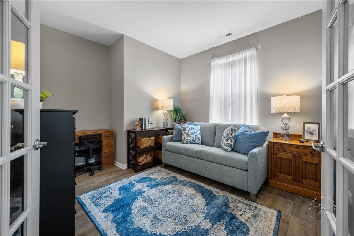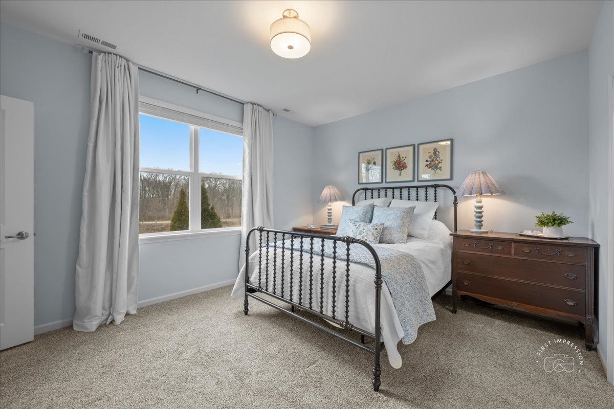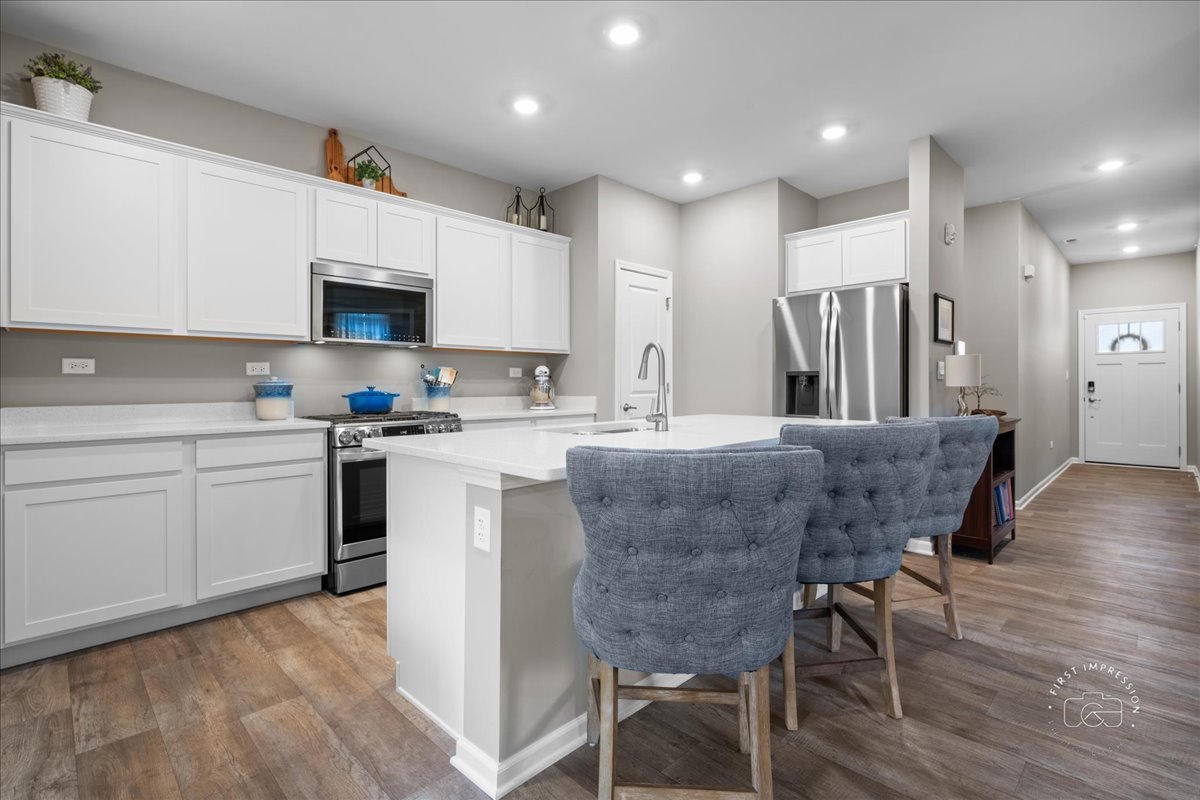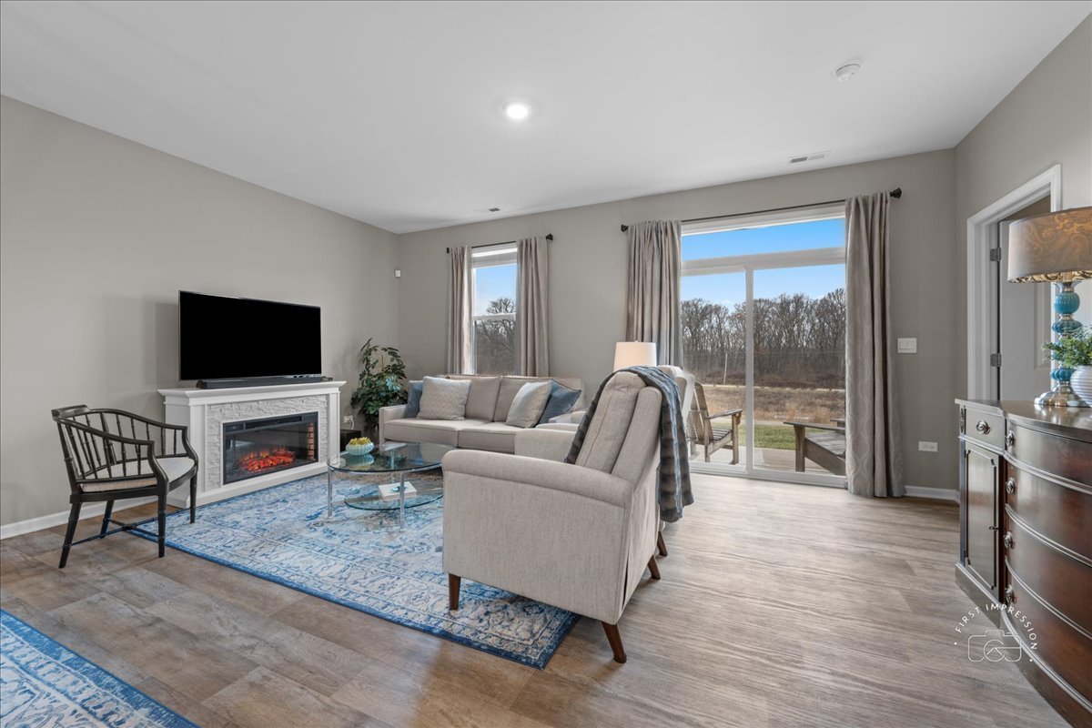 Modern luxury meets resort style living in Lincoln Valley. Step into this stunning 2-bedroom, 2-bath ranch at 948 Darwin, where every detail has been upgraded for a sophisticated, low-maintenance lifestyle. The heart of the home is a custom kitchen featuring sleek white cabinetry, upgraded stainless steel appliances, and premium quartz countertops. A large island with seating and a functional pantry make this space as practical as it is beautiful. Primary Suite features an ensuite bathroom including a walk-in shower w/seat, double sink vanity, linen closet and access to the spacious walk-in closet. The second bedroom is positioned on the opposite side of the residence, providing a quiet and separate space for family or friends. The Flex Room is highlighted by elegant glass French doors, perfect for a home office or den. Functional Spaces include the laundry room, equipped with custom cabinets and a drying rack, while the 2 car garage features a durable epoxy floor. ***Enjoy some of the BEST VIEWS in the neighborhood directly from your patio. This property offers exceptional vantage points for STUNNING SUNSETS and LOCAL FIREWORKS displays. With direct access to the community’s extensive walking paths, the outdoors is always just a step away.*** Conveniently located directly across the street from the clubhouse, you have immediate access to world-class amenities and social activities: * Health & Wellness: Fully equipped gym, fitness studio, and a sparkling outdoor pool. * Recreation: Pickleball courts, bocce ball courts, and 2 dog parks. * Nature: Walking trails and proximity to the Red Oak Nature Center and Fox River Trail. Located just minutes from I-88 and the Metra, this home perfectly blends luxury, convenience, and a low-maintenance lifestyle.