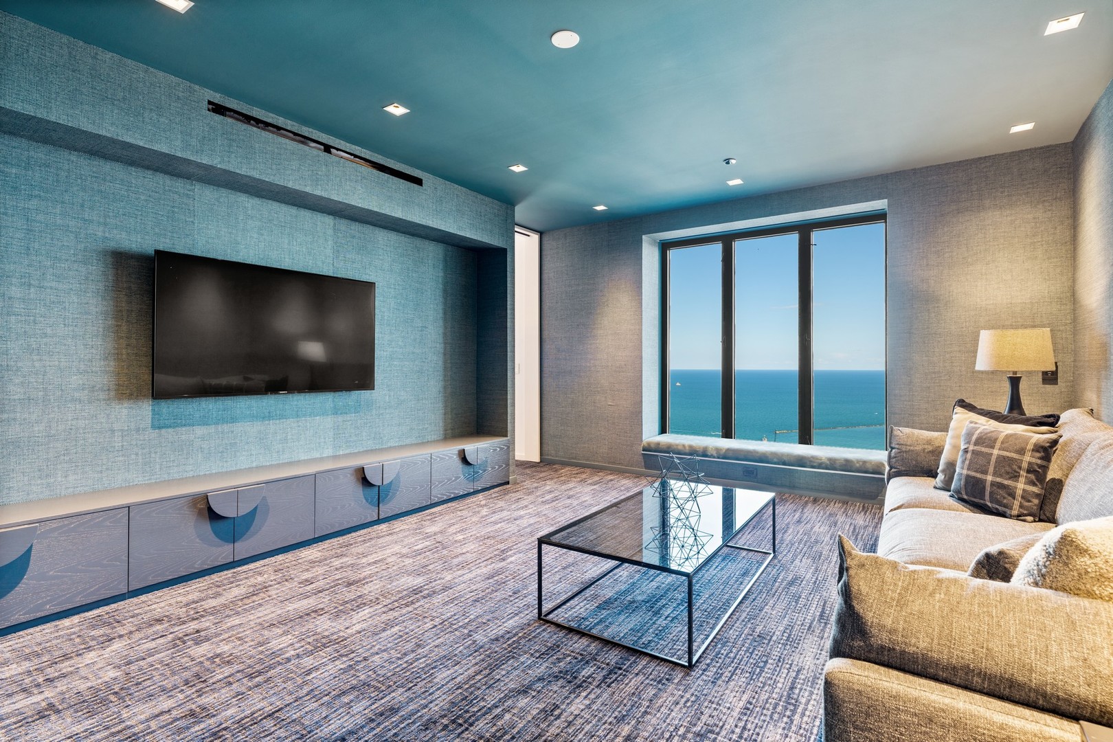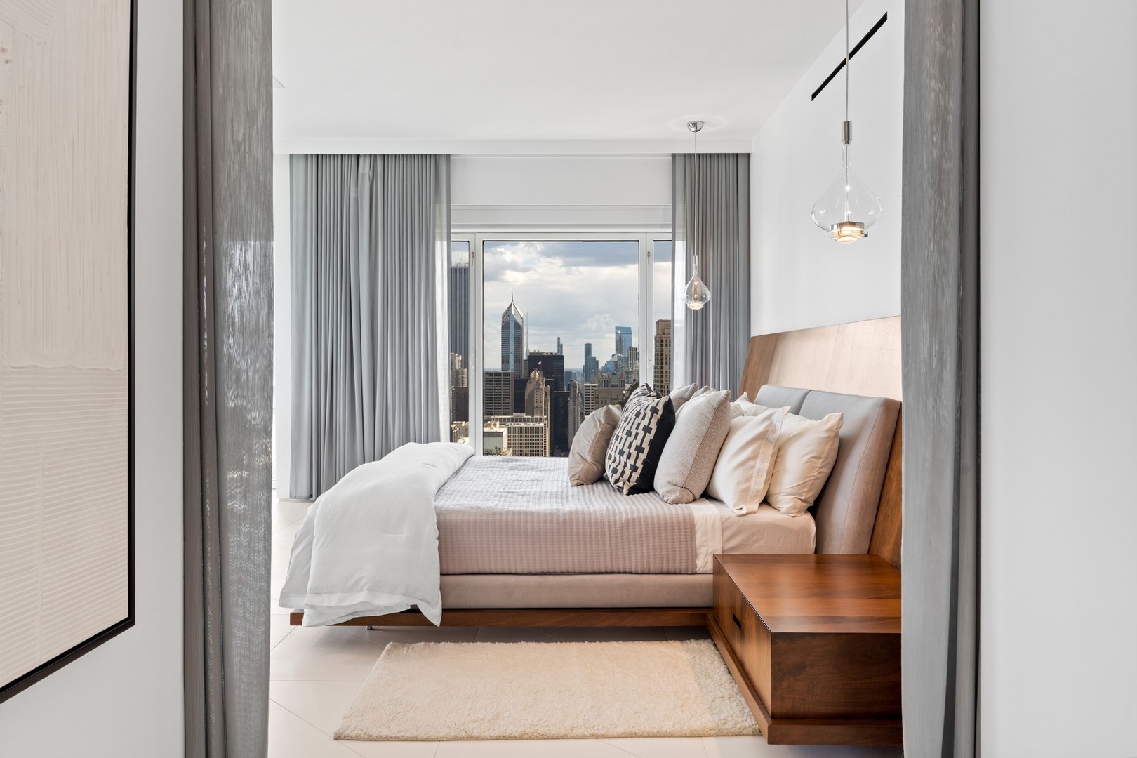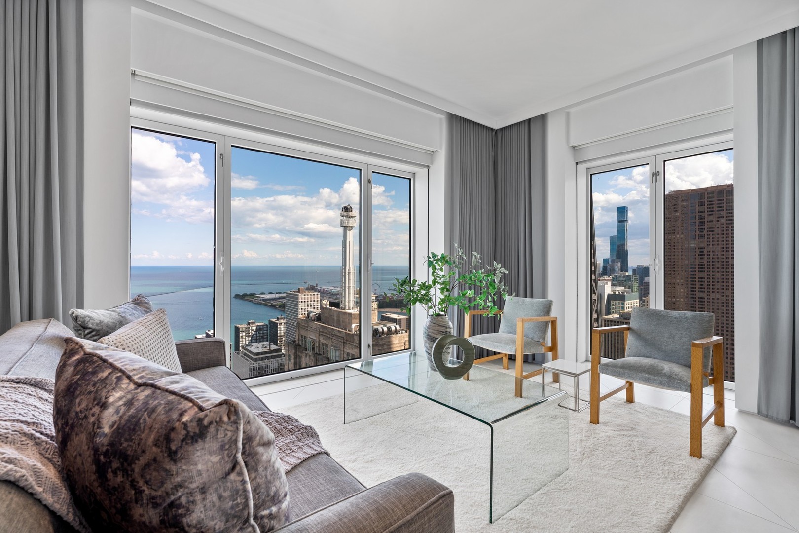 Perched near the top of one of Chicago’s most iconic addresses, Unit 4605 at One Magnificent Mile is a rare, architecturally significant duplex offering nearly 9,000 square feet of masterfully curated living space. Designed by Wheeler Kearns Architects with interiors by Set Setting Studio, this 6 bedroom, 8 full and 3 half bathroom residence combines warm contemporary design with sweeping views of Lake Michigan and the Chicago skyline. From the moment you enter the dramatic foyer, a sculptural staircase and floor-to-ceiling windows reveal a home created for both elevated entertaining and serene everyday living. The grand great room opens to a private terrace and features a stunning custom burlwood wet bar and glass wine room. The Valcucine kitchen is a functional work of art overlooking Lake Michigan, outfitted with Sub-Zero and Miele appliances, oversized island, a raw-edge dining peninsula, and a massive walk-in pantry. A cozy family room, one of two offices, and four ensuite bedrooms complete the main level. The luxurious primary suite offers a private sitting area, two custom walk-in closets, and dual spa baths with stunning views designed with comfort and style. Upstairs is a private wellness and entertainment sanctuary. A sunlit rec room with marble-clad wet bar, while sliding live-edge doors reveal a spa suite complete with massage room, fitness studio, and a club-style bath with steam shower and whirlpool tub. Additional highlights include a media room, playroom, impressive corner study, and a fifth ensuite bedroom ideal for guests or an au pair. Sophisticated design details abound including 7″ wide-plank European white oak flooring, custom millwork, Grigio Piesantina limestone, and designer lighting and finishes from Boffi, Dornbracht, Holly Hunt, Ann Sacks, and more. Smart home features via Crestron ensure seamless control of lighting, climate, and audio. Residents of 950 N. Michigan enjoy white-glove amenities including 24-hour door staff, an indoor lap pool, fitness center, rooftop decks, and on-site management. Just steps from Oak Street Beach, Michigan Avenue, and world-class shopping and dining, Unit 4605 is a once-in-a-lifetime offering-an extraordinary work of art in the sky.