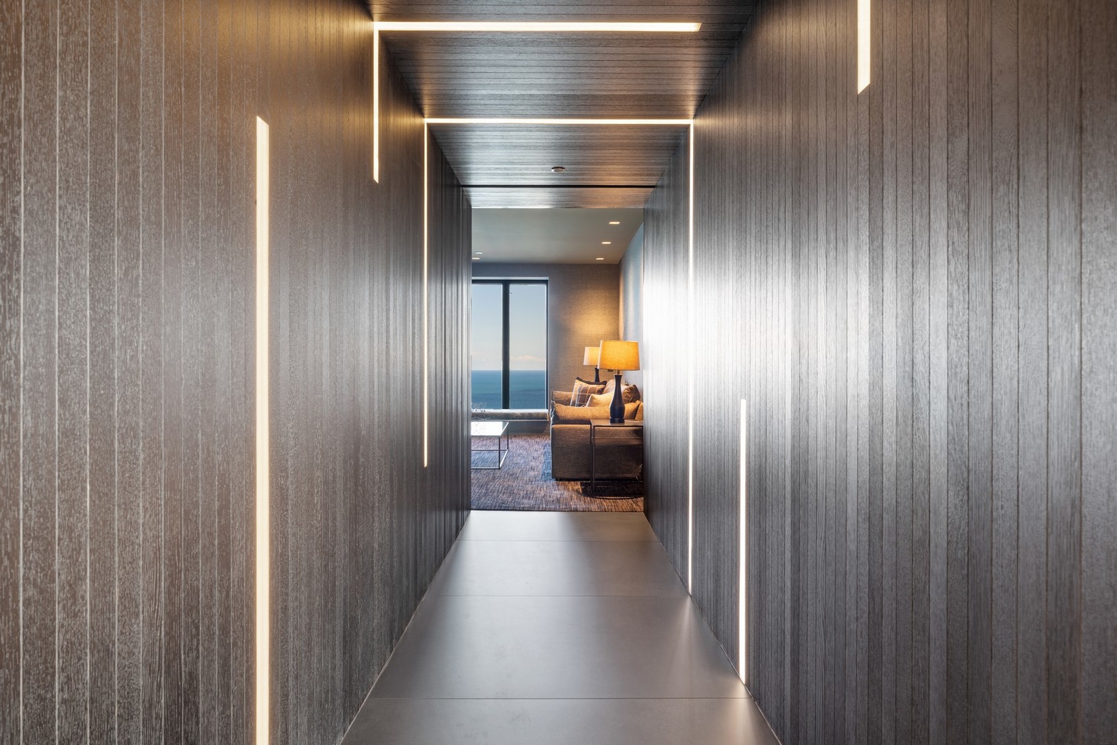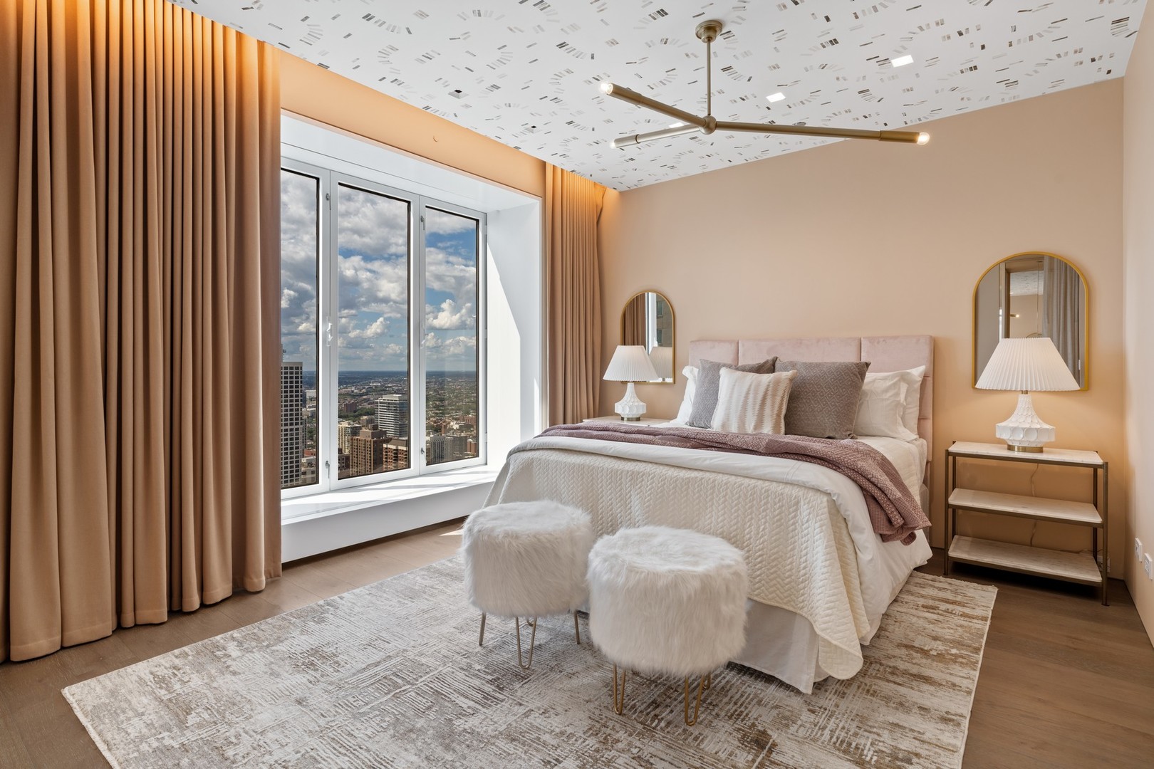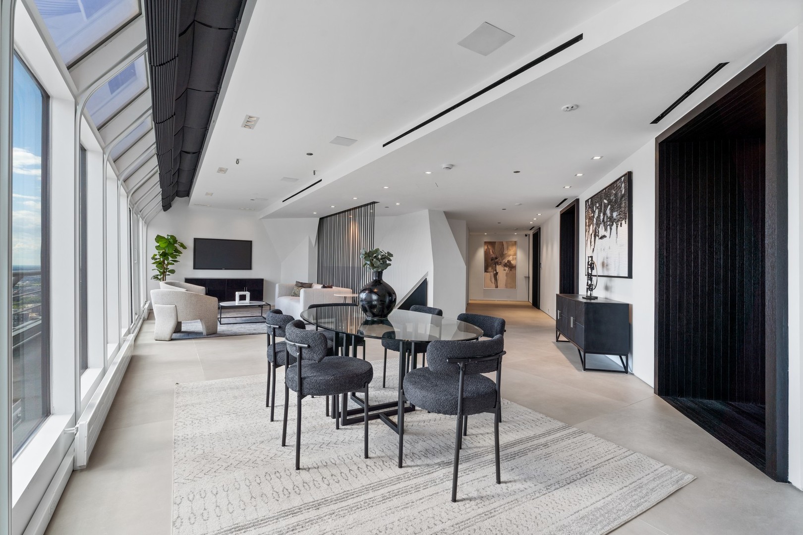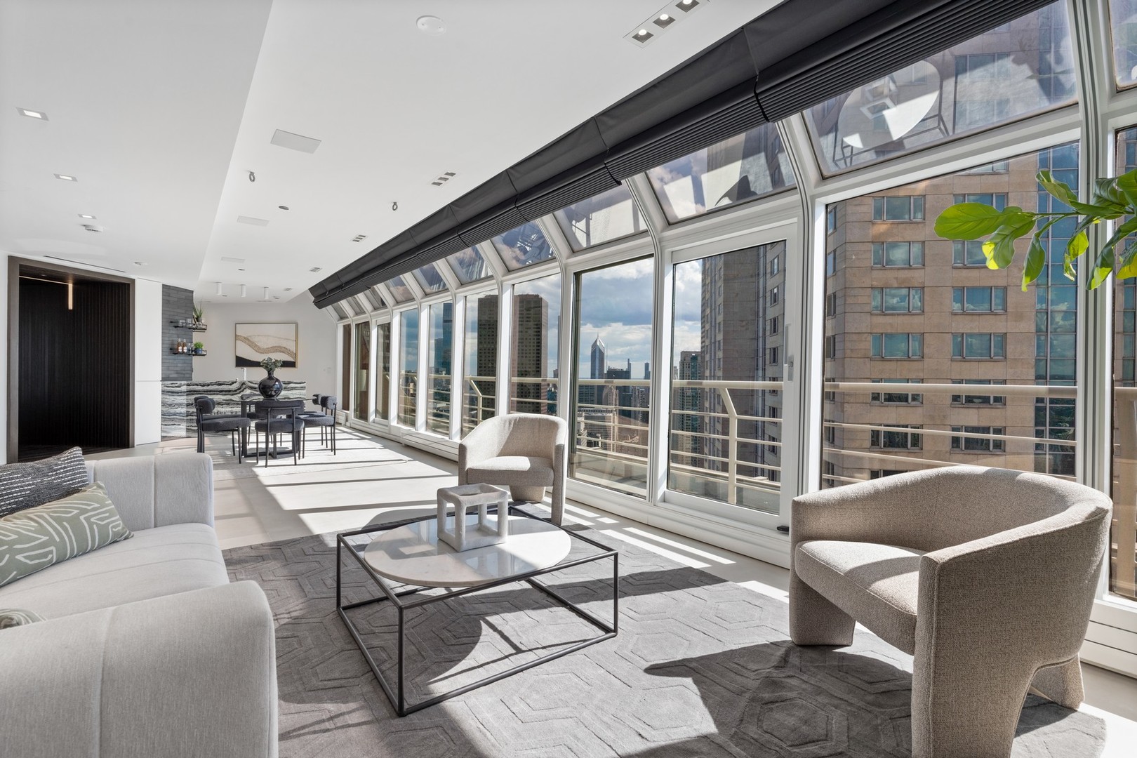Perched near the top of one of Chicago’s most iconic addresses, Unit 4605 at One Magnificent Mile is a rare, architecturally significant duplex offering nearly 9,000 square feet of masterfully curated living space. Designed by Wheeler Kearns Architects with interiors by Set Setting Studio, this 6 bedroom, 8 full and 3 half bathroom residence combines warm contemporary design with sweeping views of Lake Michigan and the Chicago skyline. From the moment you enter the dramatic foyer, a sculptural staircase and floor-to-ceiling windows reveal a home created for both elevated entertaining and serene everyday living. The grand great room opens to a private terrace and features a stunning custom burlwood wet bar and glass wine room. The Valcucine kitchen is a functional work of art overlooking Lake Michigan, outfitted with Sub-Zero and Miele appliances, oversized island, a raw-edge dining peninsula, and a massive walk-in pantry. A cozy family room, one of two offices, and four ensuite bedrooms complete the main level. The luxurious primary suite offers a private sitting area, two custom walk-in closets, and dual spa baths with stunning views designed with comfort and style. Upstairs is a private wellness and entertainment sanctuary. A sunlit rec room with marble-clad wet bar, while sliding live-edge doors reveal a spa suite complete with massage room, fitness studio, and a club-style bath with steam shower and whirlpool tub. Additional highlights include a media room, playroom, impressive corner study, and a fifth ensuite bedroom ideal for guests or an au pair. Sophisticated design details abound including 7″ wide-plank European white oak flooring, custom millwork, Grigio Piesantina limestone, and designer lighting and finishes from Boffi, Dornbracht, Holly Hunt, Ann Sacks, and more. Smart home features via Crestron ensure seamless control of lighting, climate, and audio. Residents of 950 N. Michigan enjoy white-glove amenities including 24-hour door staff, an indoor lap pool, fitness center, rooftop decks, and on-site management. Just steps from Oak Street Beach, Michigan Avenue, and world-class shopping and dining, Unit 4605 is a once-in-a-lifetime offering-an extraordinary work of art in the sky.