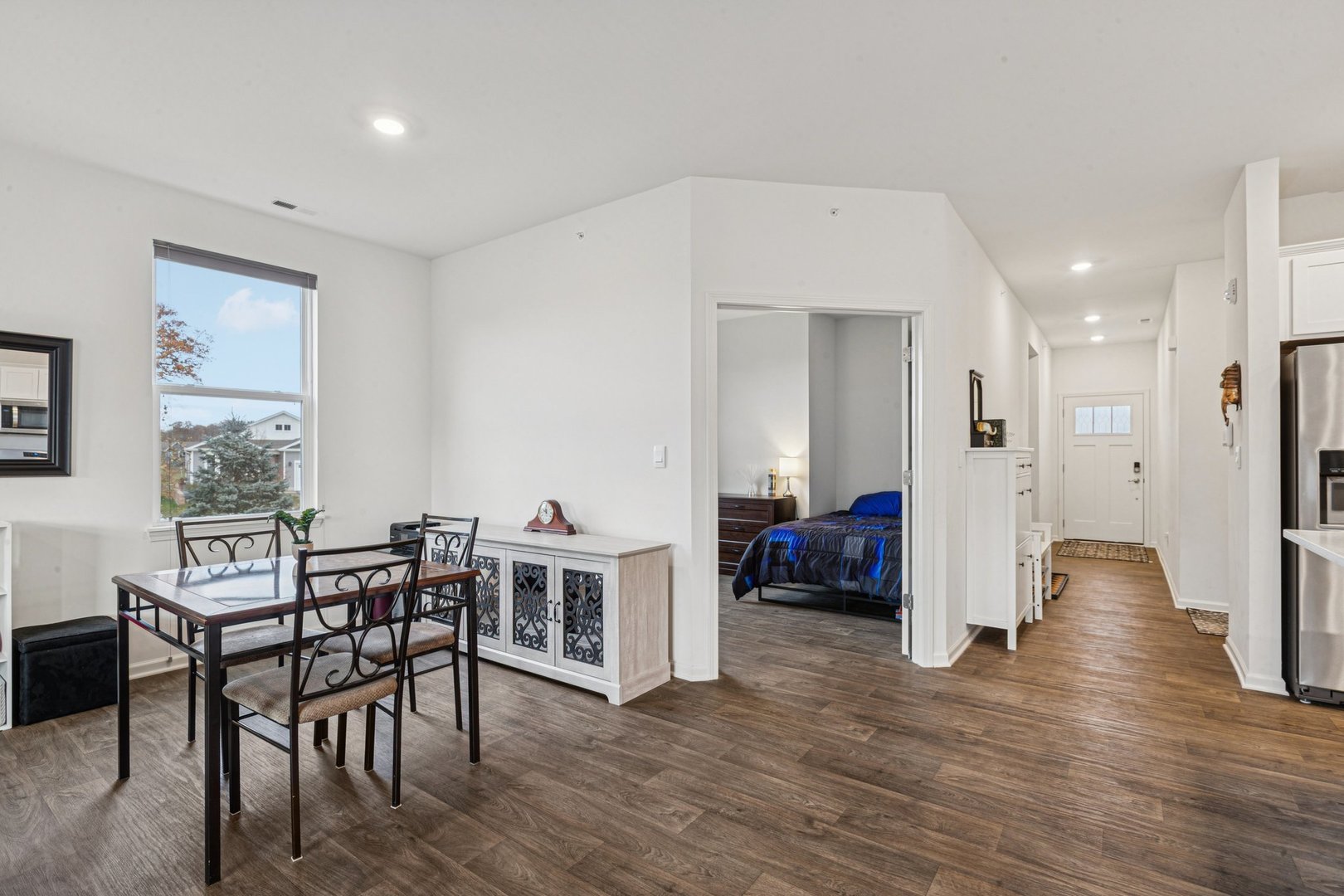 Welcome to this 2023 built ranch townhome offering stylish finishes and incredible community amenities in desirable Lincoln Valley! This 2 bedroom, 2 bathroom home with a large office features an inviting open concept layout with luxury vinyl flooring throughout the main living areas and cozy carpet in the bedrooms. The living and dining areas are filled with natural light and provide access to the private back patio. The chef-inspired kitchen features a large island with breakfast bar, modern white cabinetry, pantry closet and seamlessly flows into the dining and living areas-perfect for entertaining. The primary suite includes a generous walk-in closet and a private en suite with a walk-in shower. A spacious second bedroom and office are perfect for guests, work or hobbies. A full hall bath with soaking tub and laundry room with extra storage complete this home. Outside enjoy your private back patio and an attached 2-car garage. The community is beautifully maintained with shared green spaces and offers outstanding amenities including a clubhouse with party room, outdoor pool, bocce ball court, pickleball court & more! Move-in ready and located in a vibrant community, this home offers the perfect blend of comfort, style, and convenience. Let this be the one you love coming home to!