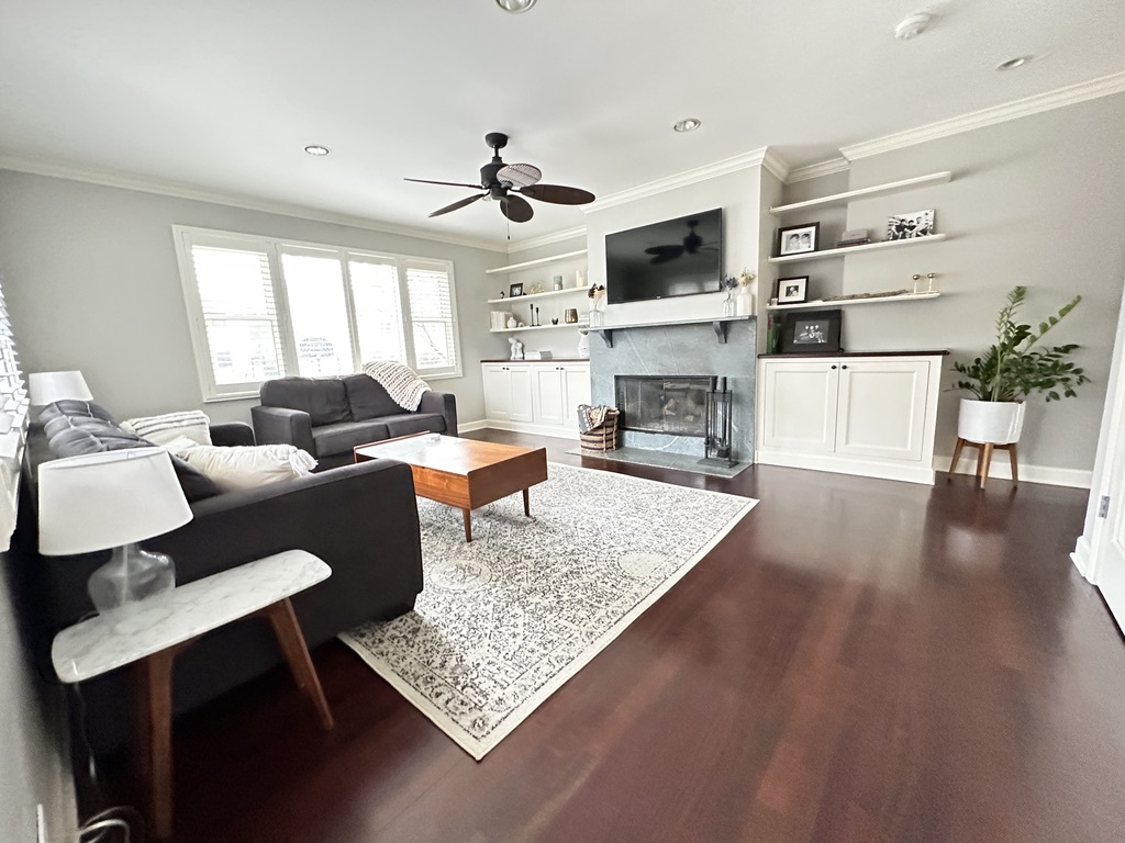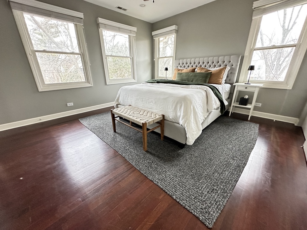 Welcome to 953 Clay Court – a thoughtfully renovated 4-bedroom, 2.2 bath colonial ideally located just steps from Maplewood Park and within walking distance to downtown Deerfield and the Metra train. This inviting home combines timeless style with modern updates. The stunning kitchen features sleek charcoal cabinetry, white subway tile backsplash, quartz countertops, high-end stainless-steel appliances, open shelving, and a center island with breakfast bar seating. The bright, open floor plan flows effortlessly through the main level, showcasing gleaming hardwood floors, abundant natural light, and a wood-burning fireplace that adds warmth and character. Upstairs, you’ll find four spacious bedrooms and two full baths, one with a whirlpool tub and the primary with a double vanity and rain shower. The finished basement offers flexible living space with distinct areas for entertainment, fitness, and a half bath-ideal for today’s lifestyle. Enjoy outdoor living on the private backyard deck surrounded by mature landscaping. A two-car detached garage completes the property. Located in one of Deerfield’s most sought-after neighborhoods, this home perfectly balances classic charm with modern comfort.