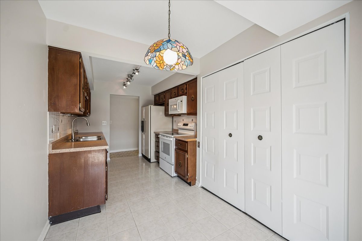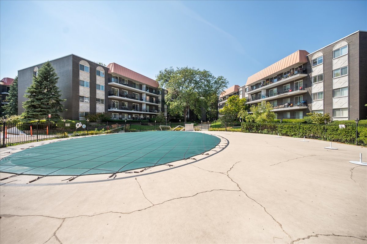 Welcome to 9530 Lamon #403! This top-floor unit boasts an abundance of natural light, highlighted by two sets of sliding doors that lead to a spacious balcony accessible from both the living room and kitchen. The interior features fresh paint throughout and newer laminate wood flooring in the living areas and bedrooms. Enjoy the convenience of all newer windows and sliders, newer kitchen appliances, and a generous pantry. You’ll love the two walk-in closets for ample storage. The building offers great amenities, including an elevator, outdoor pool and sundeck, storage lockers, and a heated garage parking space. With low HOA fees, this property is a fantastic deal! It’s also within easy walking distance to the charming Old Orchard Shopping Center and conveniently close to additional shopping and dining options. Please note, rentals are not permitted, making it an ideal place to call home with easy guest parking available. Welcome home