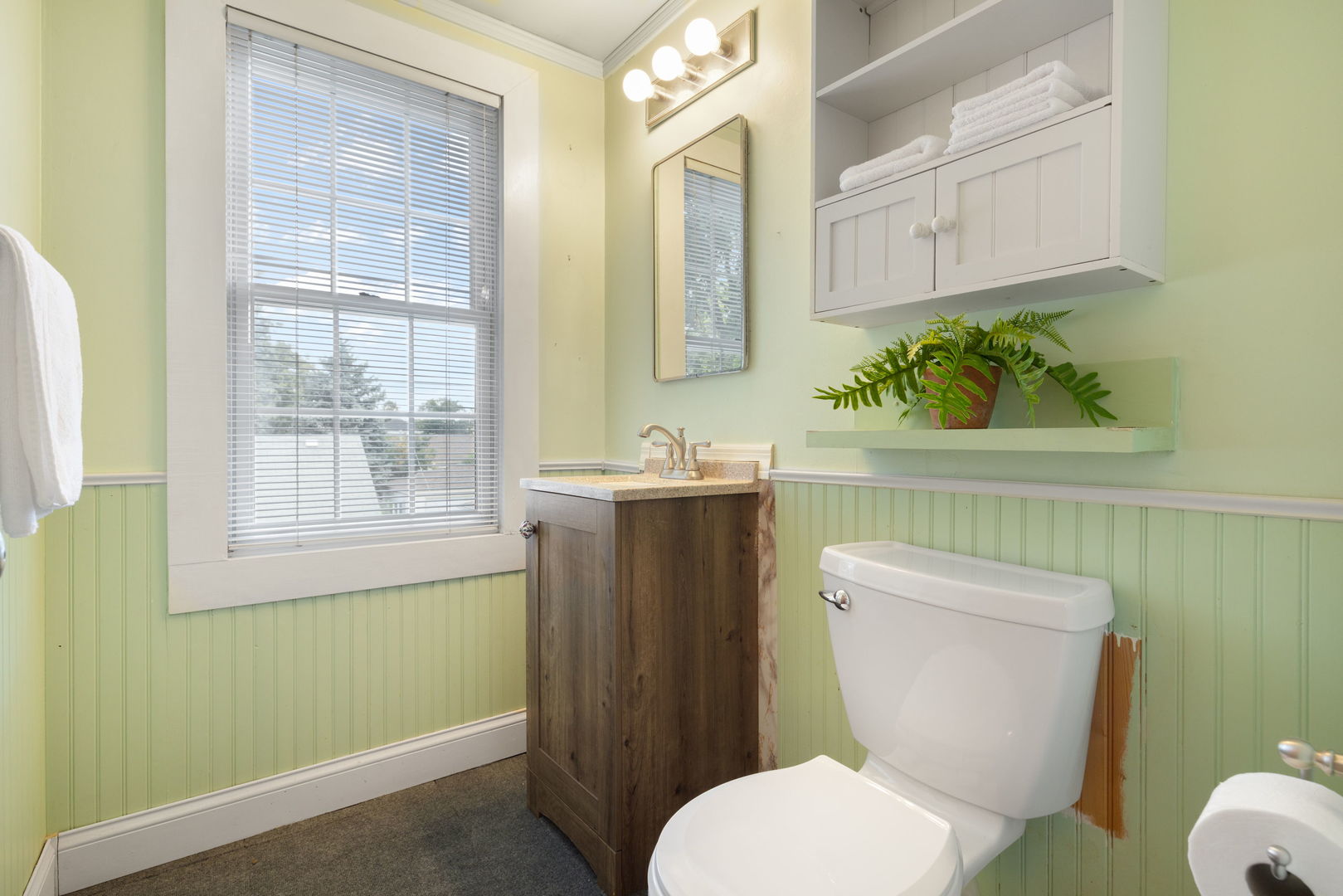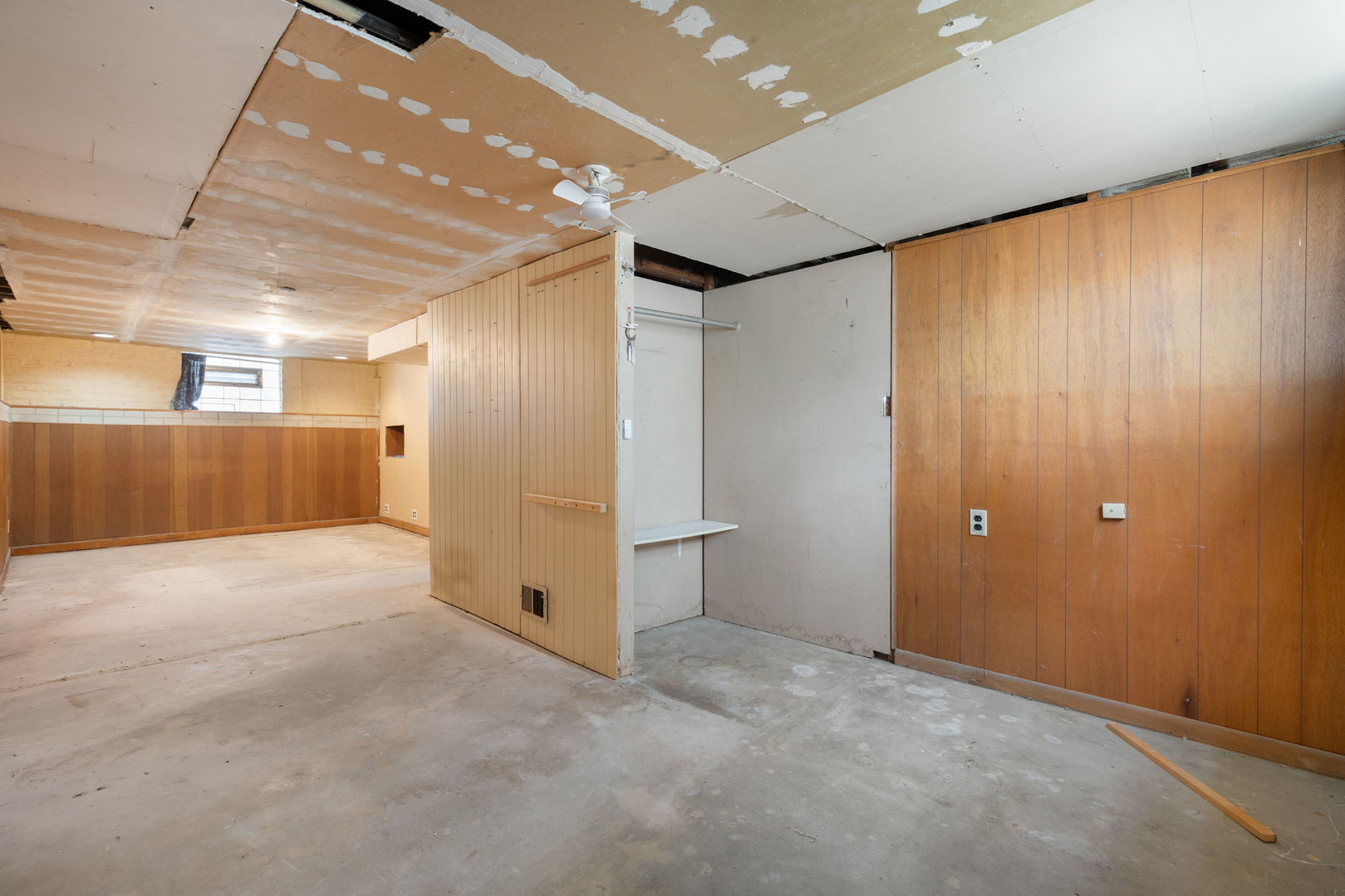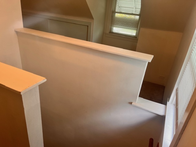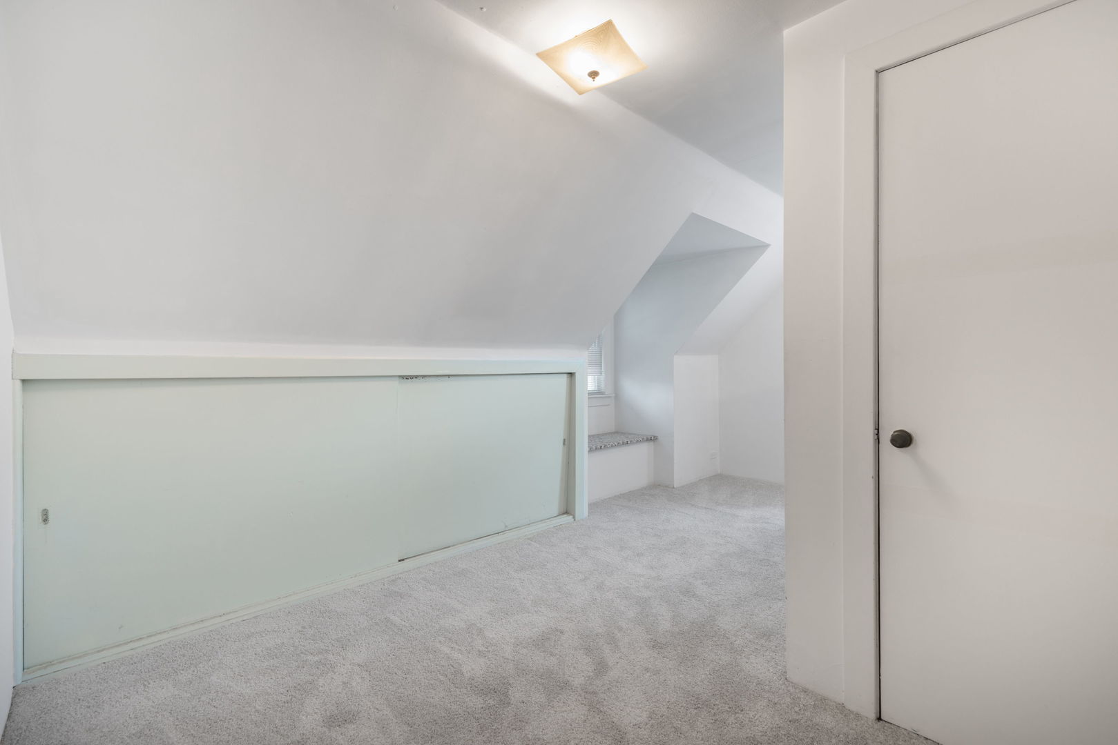 Newly refreshed and cleaned, with new carpet, fresh interior paint, spic-n-span and move in ready! Main level carpet removed to expose hardwood floors in huge front living room and dining room…really great space. 1st Floor Bedroom also has hardwood floors and two closets. Kitchen has raised panel oak cabinets, stainless steel sink, LVP, ceiling fan and light, custom wood blinds. Older appliances removed…new owner has some room to customize this nice space. Second floor has spacious loft/bedroom with built-in storage, Primary Bedroom, and storage alcove. Convenient powder room too! Full basement is ready for new owners finishing touches. NEW GLASS BLOCK WINDOWS. New water service to house 2025. UPGRADED ELECTRIC SERVICE. Fenced and private backyard with firepit. Awesome OVERSIZED INSULATED GARAGE with it’s own electric panel, stairs to loft. FURNACE AND WATER HEATER 2023