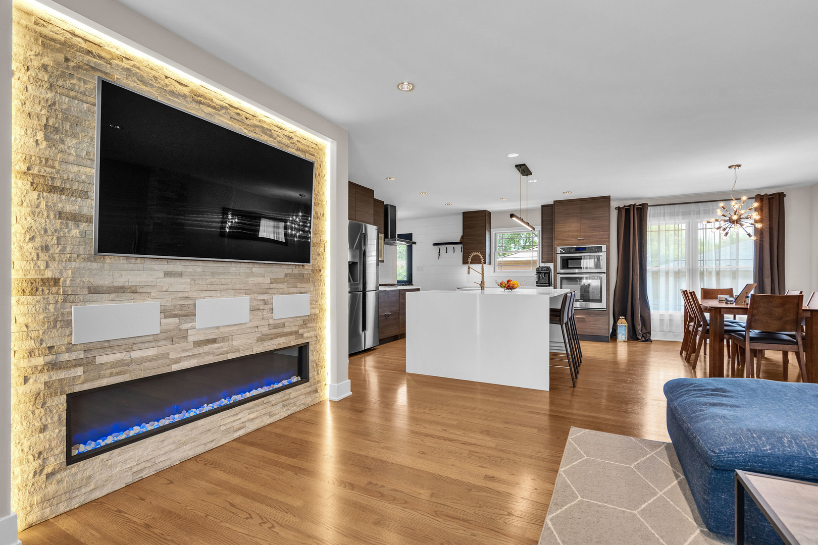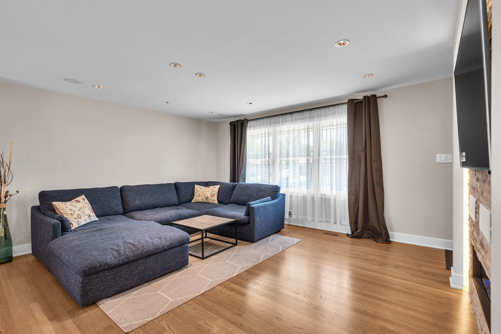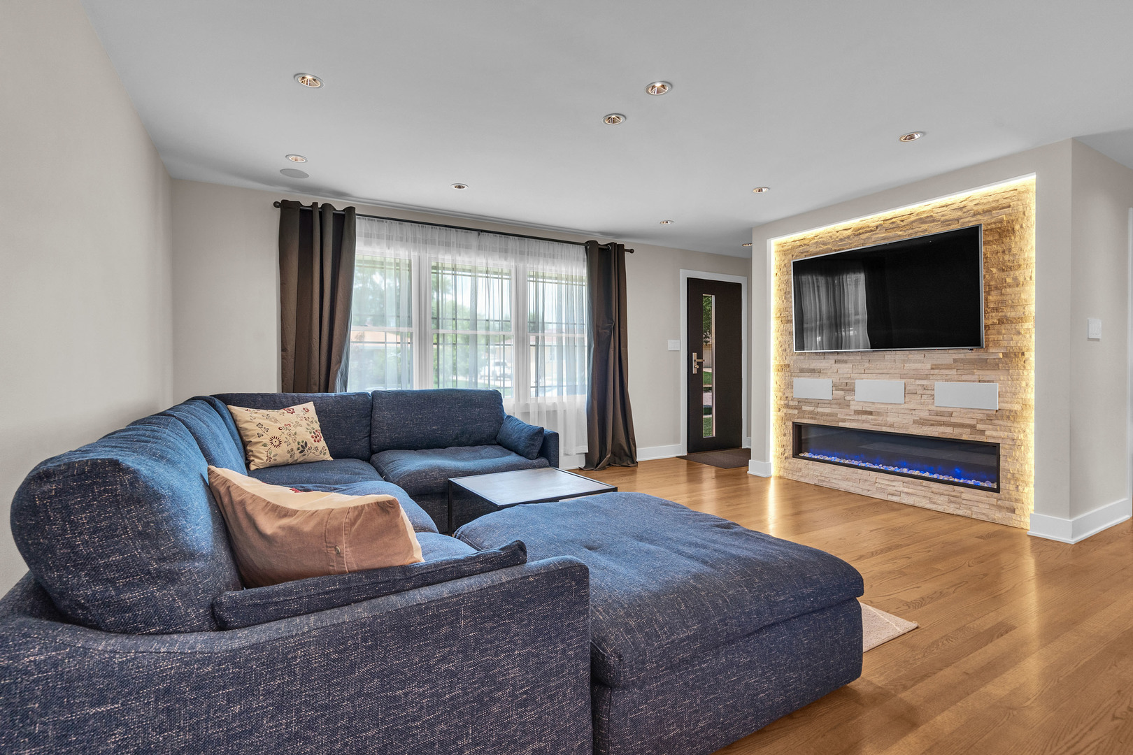 Totally remodeled 3 br. 2 full bath home. You will instantly fall in love with this masterpiece, everything you ever wanted, recessed, ambient and accent lighting throughout the entire house. Hardwood floors through out the entire first floor, Modern kitchen with huge island, SS appliances, eating area, and quartz countertops. build-in in electric fireplace adds charm to the first floor open layout. First floor also features bath with self standing tub and walk in shower with custom shower door and cabinets. Full finished basement with bar, full bath with jacuzzi and built in surround speakers. Spectacular yard with gazebo, 2 car garage and driveway for 4-5 cars. Roof ,gutters, 2025 Smart Lutron Lighting control system throughout entire house that can be operated through phone.
