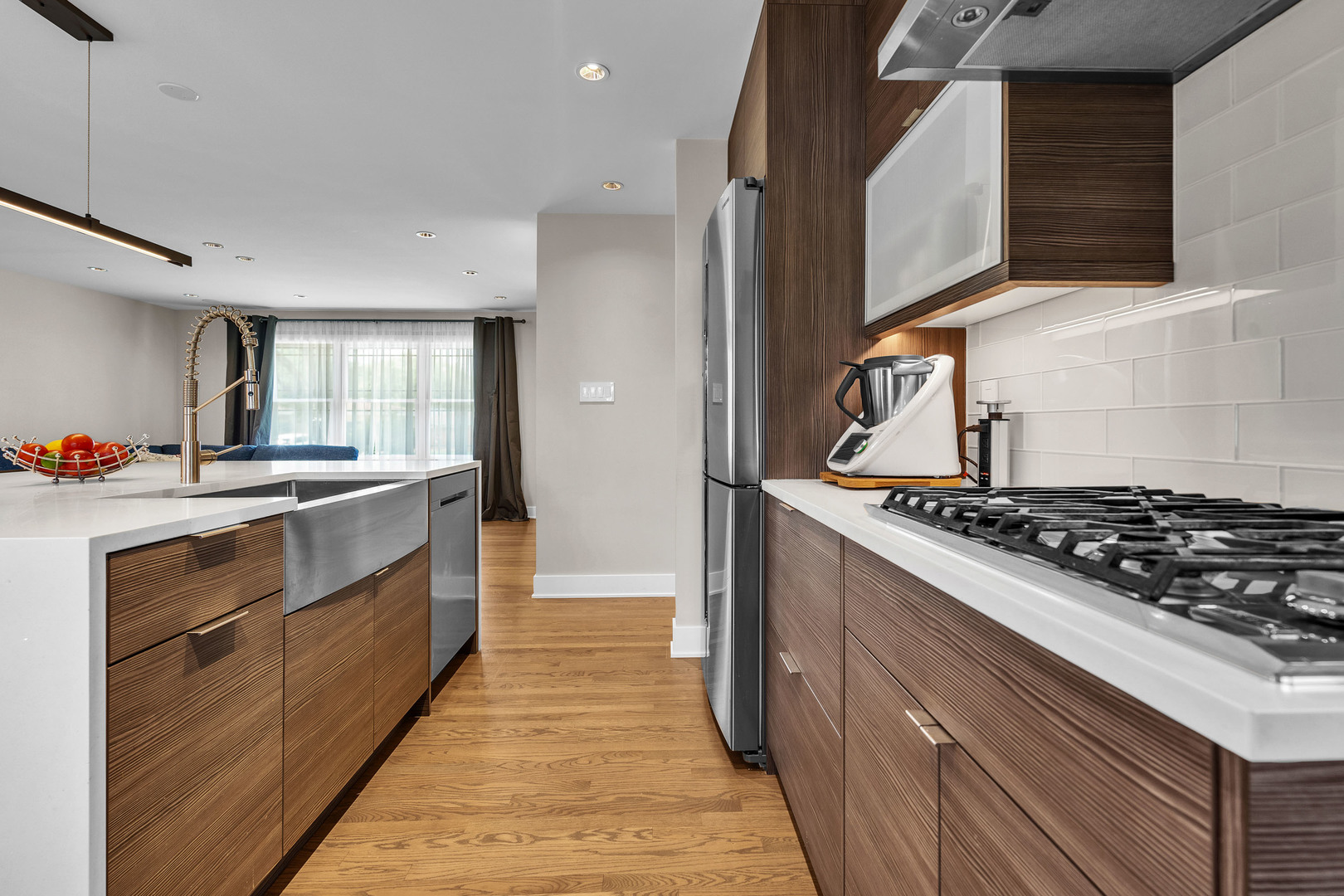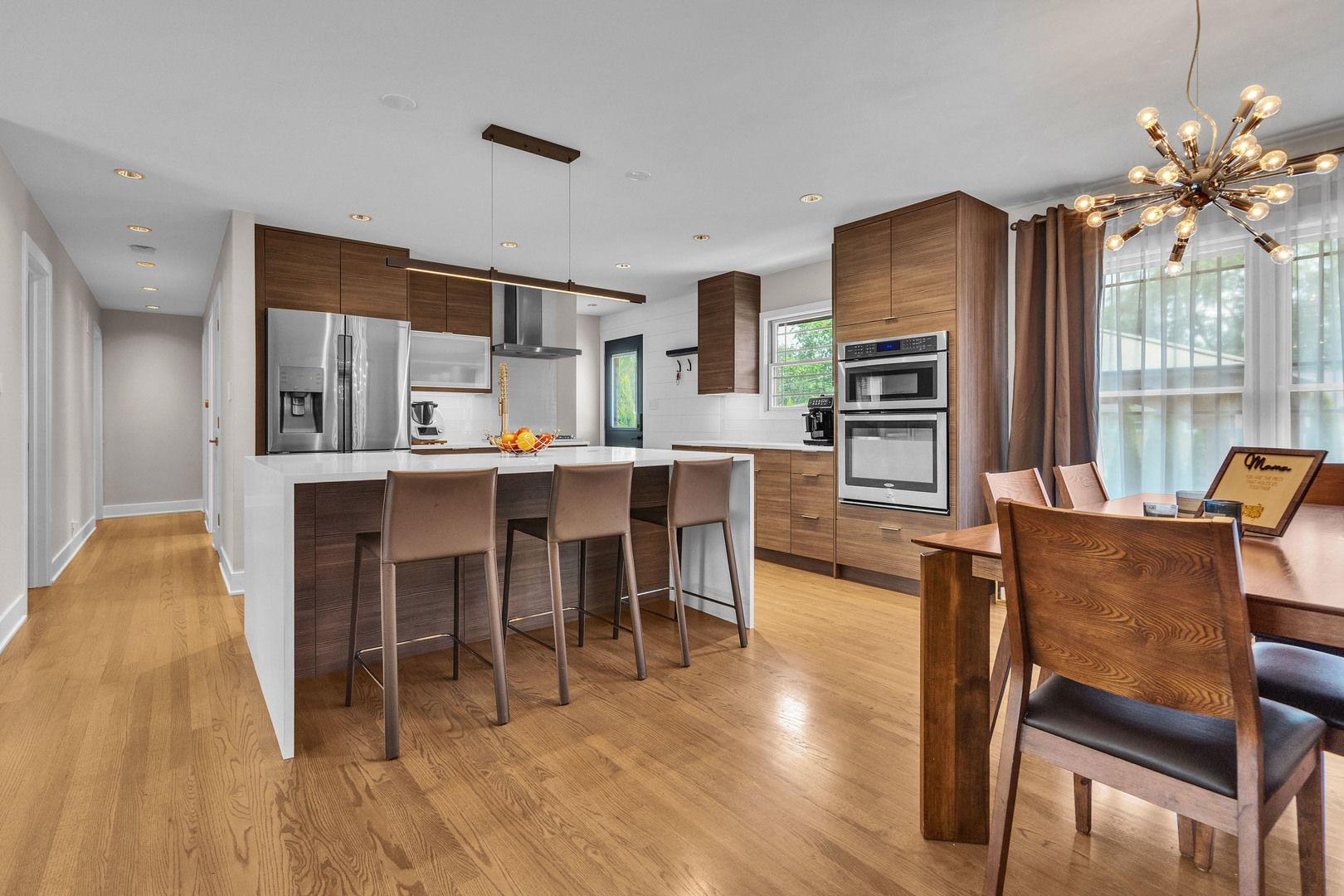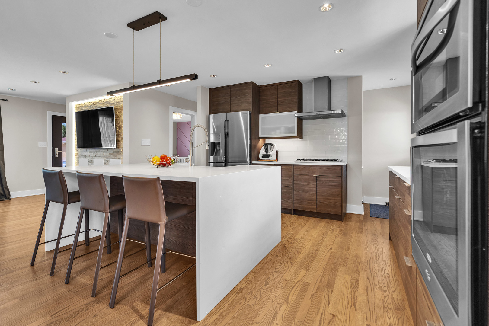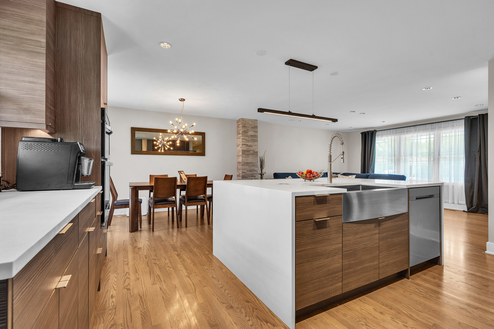 Totally remodeled 3 br. 2 full bath home. You will instantly fall in love with this masterpiece, everything you ever wanted, recessed, ambient and accent lighting throughout the entire house. Hardwood floors through out the entire first floor, Modern kitchen with huge island, SS appliances, eating area, and quartz countertops. build-in in electric fireplace adds charm to the first floor open layout. First floor also features bath with self standing tub and walk in shower with custom shower door and cabinets. Full finished basement with bar, full bath with jacuzzi and built in surround speakers. Spectacular yard with gazebo, 2 car garage and driveway for 4-5 cars. Roof ,gutters, 2025 Smart Lutron Lighting control system throughout entire house that can be operated through phone.