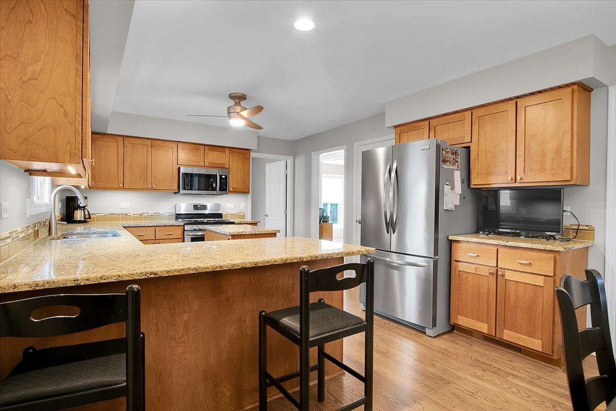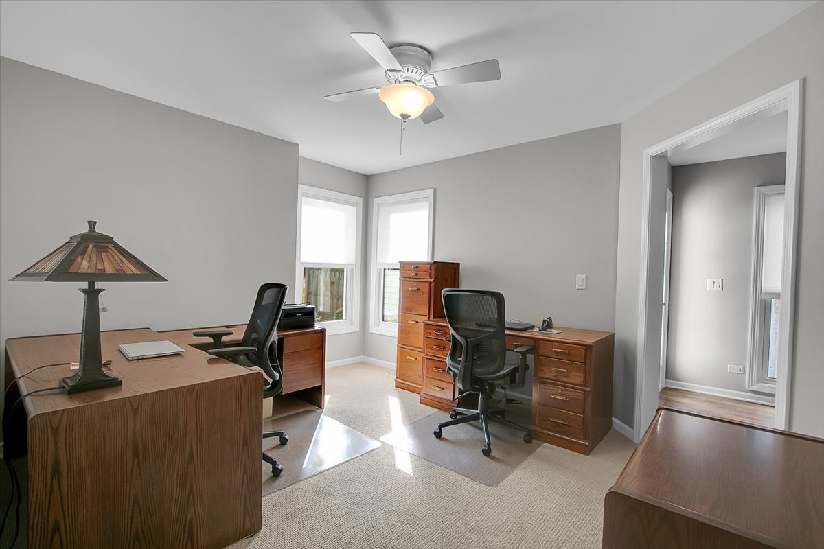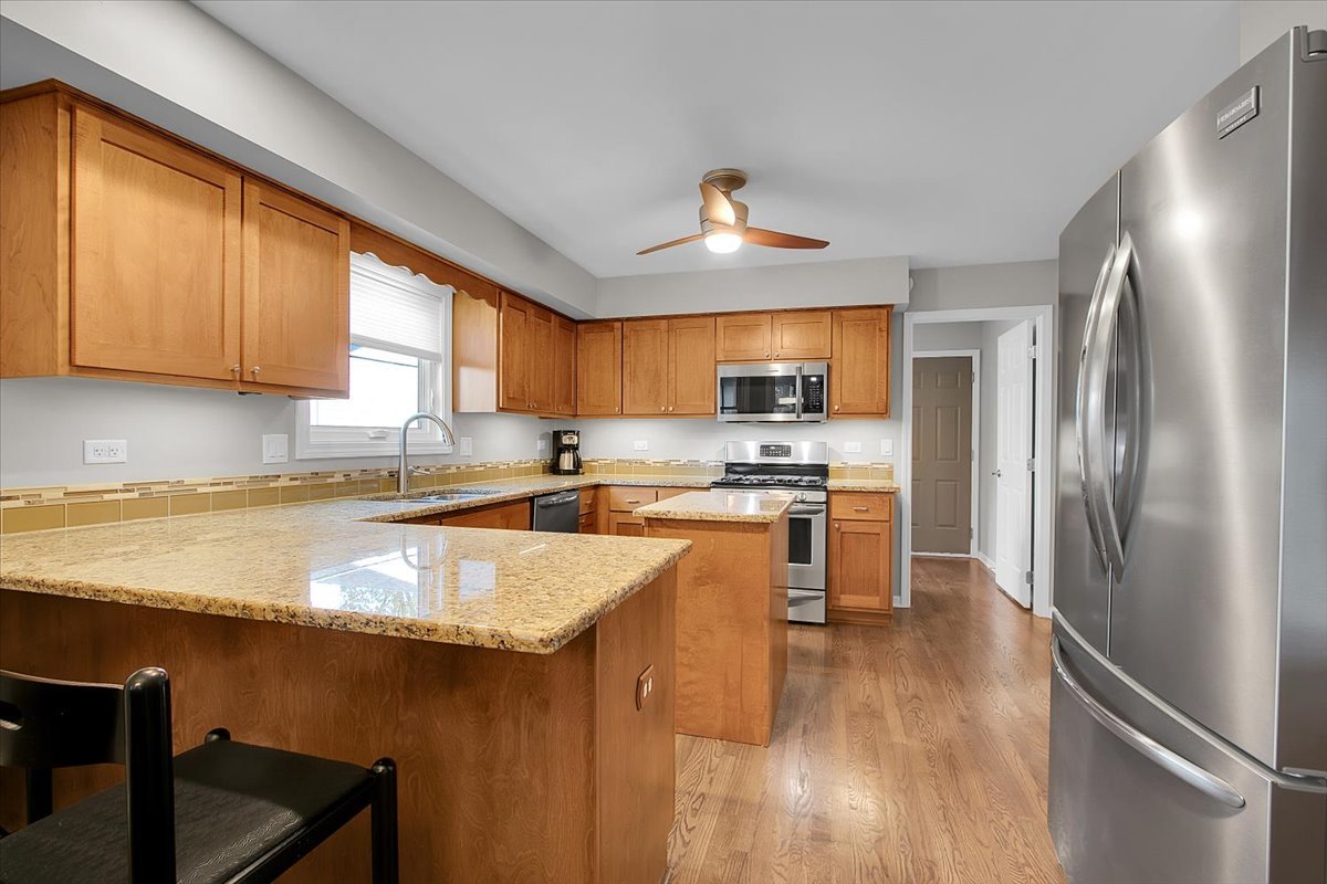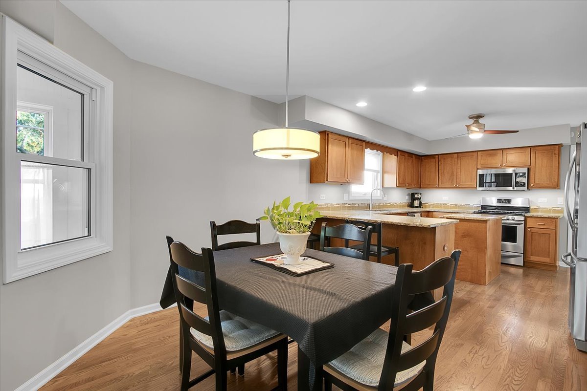 A beautifully maintained home tucked away on a quiet cul-de-sac in the heart of Naperville. Just minutes from downtown, the train station, and major expressways, this home offers the perfect blend of convenience, comfort, and charm. From the moment it was built, thoughtful enhancements were added to elevate everyday living, including a wonderfully inviting 3-season room, a brick paver patio ideal for entertaining, and a brick paver walkway along the south side of the home. Inside, most rooms on the main level feature rich hardwood floors that add warmth and elegance to the living spaces, while plush wall-to-wall carpeting was installed in the upstairs bedrooms in 2017 for added comfort. In 2015, the kitchen and laundry areas were transformed with custom cabinetry and sleek granite kitchen countertops, setting the stage for both style and functionality. The exterior beautifully landscaped to create a serene, private retreat, complete with fencing along the sides and back of the property. A new garage door opener and an American Standard air conditioner were added in 2018 to enhance convenience and climate control. By 2020, a wave of updates included a new fireplace insert with elegant tile and a custom mantel, a brand-new roof, washer and dryer, and fully renovated hall and half bathrooms. That same year, the entire interior was painted-from ceilings and walls to closets, baseboards, doors, and even the fireplace mantel-creating a fresh, cohesive look. Fifteen windows were replaced along with their molding, and window film was installed on the high living room windows and the half-moon window in the primary bedroom for added privacy and energy efficiency. New shades, door handles, strike plates, locks, smoke alarms, carbon monoxide detectors, and even a hose bib in the garage were added, along with paddle-style electrical switches for a modern touch. In 2021, the primary suite bathroom was completely remodeled with new tiled shower walls and flooring, updated vanity, mirrors, lighting, and shower doors. A new ceiling fan was installed in the primary bedroom to complement the upgrades. The following year, fresh paint brightened the primary suite bathroom, walk-in closet, kitchen, and office, while new outlets and switches were installed throughout. Exterior lighting was also improved with new garage side lights. Most recently, in 2024, the home received a new American Standard furnace and a stylish new front storm door. And in June 2025, the kitchen was further enhanced with a brand-new refrigerator, microwave, and oven. This home is a true gem-meticulously updated, thoughtfully designed, and ideally located. Whether you’re relaxing in the sunlit 3-season room, hosting friends on the patio, or enjoying the tranquility of the landscaped yard, this Naperville home offers a lifestyle of comfort and ease.