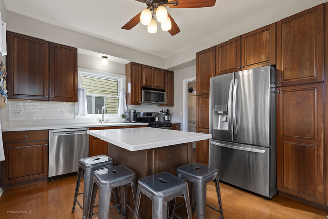 Welcome to Washington Village – where charm meets convenience! Tucked away on a quiet street in this highly sought-after neighborhood, this beautifully maintained 4-bedroom, 2.1-bath home with a 2-car garage and a finished basement offers the perfect blend of warmth, functionality, and style. As you arrive, the striking glass front door with elegant side windows sets the tone for what’s inside. Step through to find hardwood floors flowing throughout a thoughtfully designed main level featuring separate living, dining, and family rooms-each space filled with natural light streaming through newer windows. The open floor plan fosters a seamless connection, highlighted by the eye-catching brick fireplace that anchors the family room in cozy sophistication. A tasteful, modern paint palette enhances the home’s bright and inviting feel. The gourmet kitchen stands as the heart of the home, showcasing rich cherry cabinetry, stainless steel appliances, and a sit-up island perfect for conversation and everyday gatherings. From here, enjoy views of your fenced backyard framed by mature trees-ideal for relaxation, play, or quiet mornings with coffee. Head upstairs along the flowing staircase, where the thoughtful layout continues with spacious bedrooms and beautifully updated baths. The finished basement offers versatility and comfort-ideal for movie nights, game days, or private gatherings-plus ample storage to keep life organized. No HOA! With recent updates, including (but not limited to) 2023 basement and exterior paint, newer windows installed in 2019, 2017, 2009, bathroom renovation 2021, front door 2017 with side windows, and roof 2010, this home is move-in ready and meticulously maintained. Steps from open fields and a playground, a short walk to Rollins Savanna Forest Preserve for miles of scenic trails, and minutes from restaurants, retail, and downtown Grayslake’s welcoming community vibe.