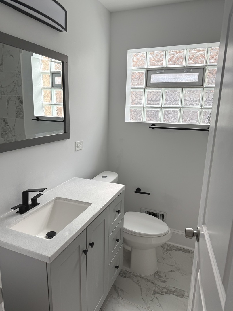 Beautifully remodeled raised Ranch nestled on a quiet, tree-lined street in the heart of Chicago. Step inside to an sun filled living space featuring a smart European-style kitchen with marble countertops, stainless-steel appliances, and ample cabinet space. Hardwood flooring flows throughout the main level, adding warmth and elegance. Enjoy a spacious, enclosed ALL-season enclosed patio-perfect for outdoor dining, summer gatherings, or year-round entertaining-leading to your backyard oasis and two-car brick garage. The finished lower level offers an additional bedroom/office, shower bathroom, oversized family room, and extra-large laundry room for added convenience. Home includes new electrical and plumbing systems, HVAC, and water heater for modern comfort and efficiency. Combining style, functionality, and location near public transportation, this home truly has it all. Don’t miss your chance to make this beautifully updated home yours-schedule your private showing today! Security System not included. 100 Tax Proration