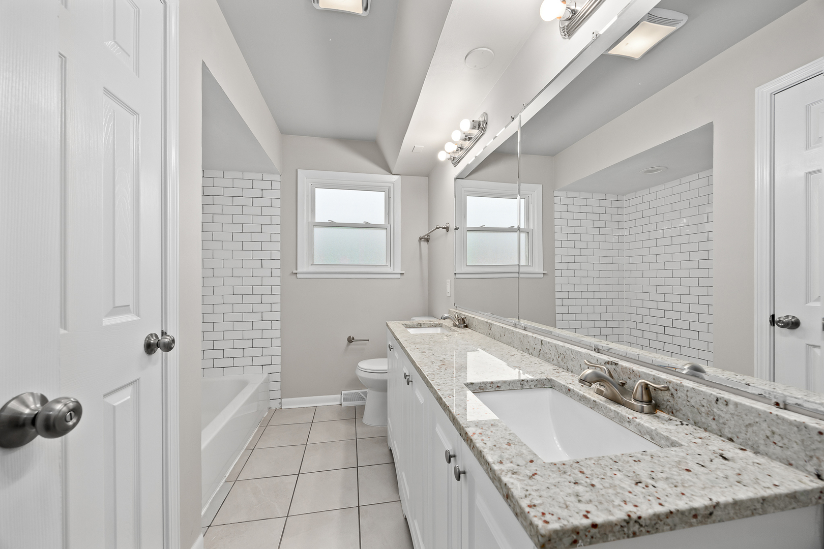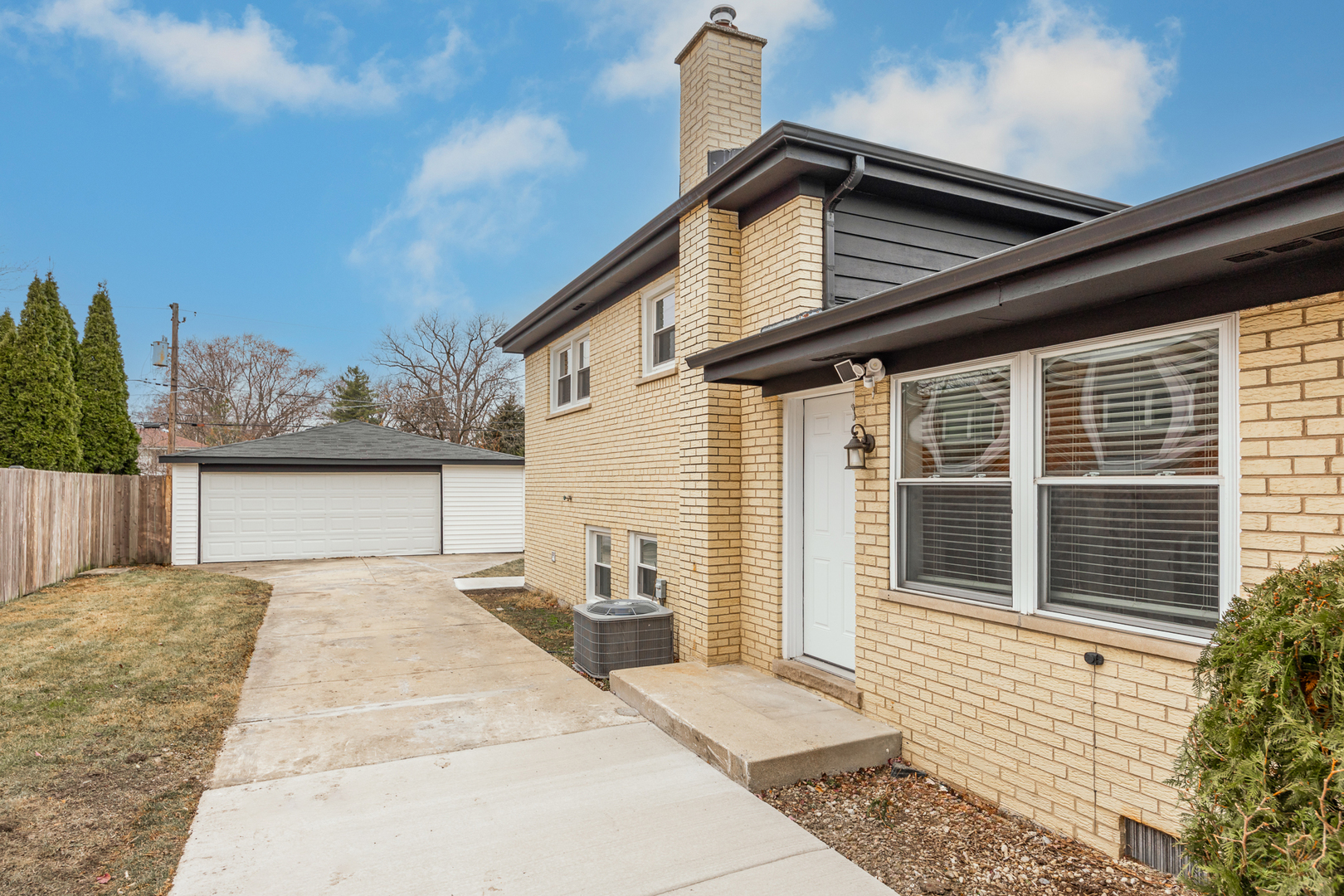 LISTED FOR SALE ONLY, NOT LISTED FOR RENT. Move in ready! This solid brick, split level style home offers 4 bedrooms, 2 full baths and a walk out lower level. Freshly painted throughout. New carpet. White trim and doors. Large living room and formal dining room. Ceramic tiled baths with updated fixtures and vanities. White kitchen cabinets and granite counter tops in the kitchen. Family room in the lower level. The side concrete driveway leads to a 2-car detached garage. Generous sized back yard. Cul-de-sac location!