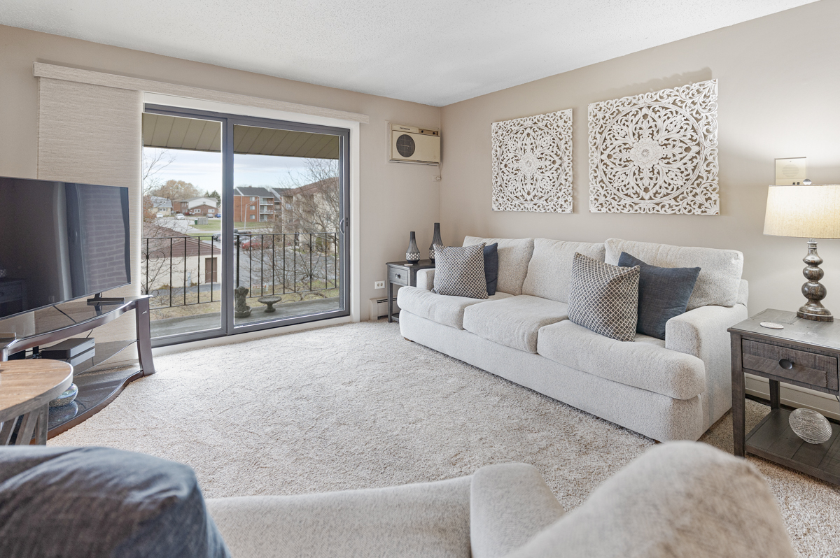 Impeccable 2 bedroom, 2 bath condo in the heart of Orland Park! Features include spacious living room with oversized glass slider door and upscale carpet! Eat in kitchen includes newer vinyl floor, oak cabinets, breakfast area, ceiling fan and service door! Large primary bedroom includes large closet and upscale carpet! Primary bath with a newer shower tile floor newer, commode and newer plumbing fixture! Bedroom 2 with dual oversized windows! Additional full bath with newer comode! In unit laundry! White 2 panel doors and trim! Spacious balcony overlooking green space! Tons of parking! Amazing location close to all shopping, transportation and services!