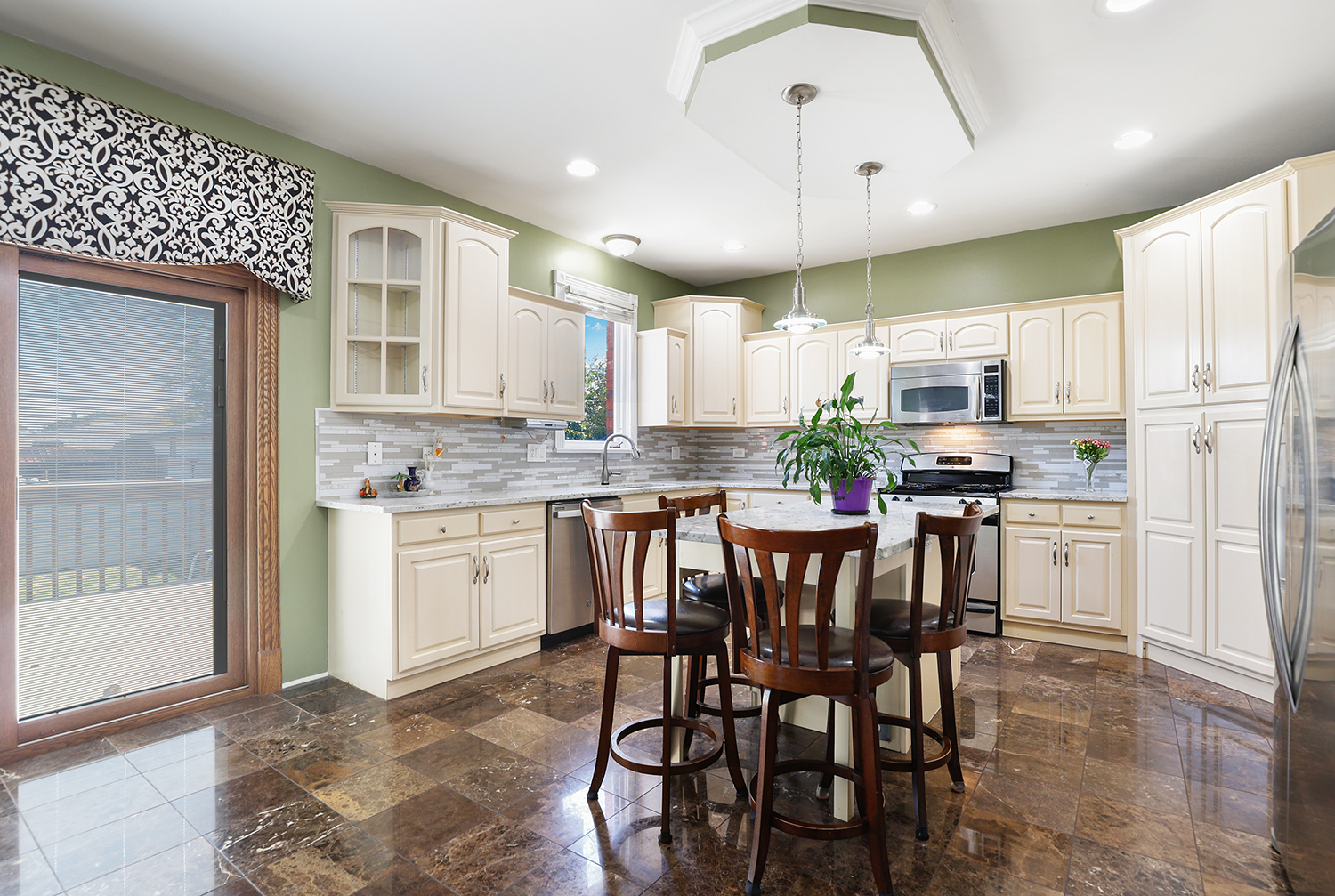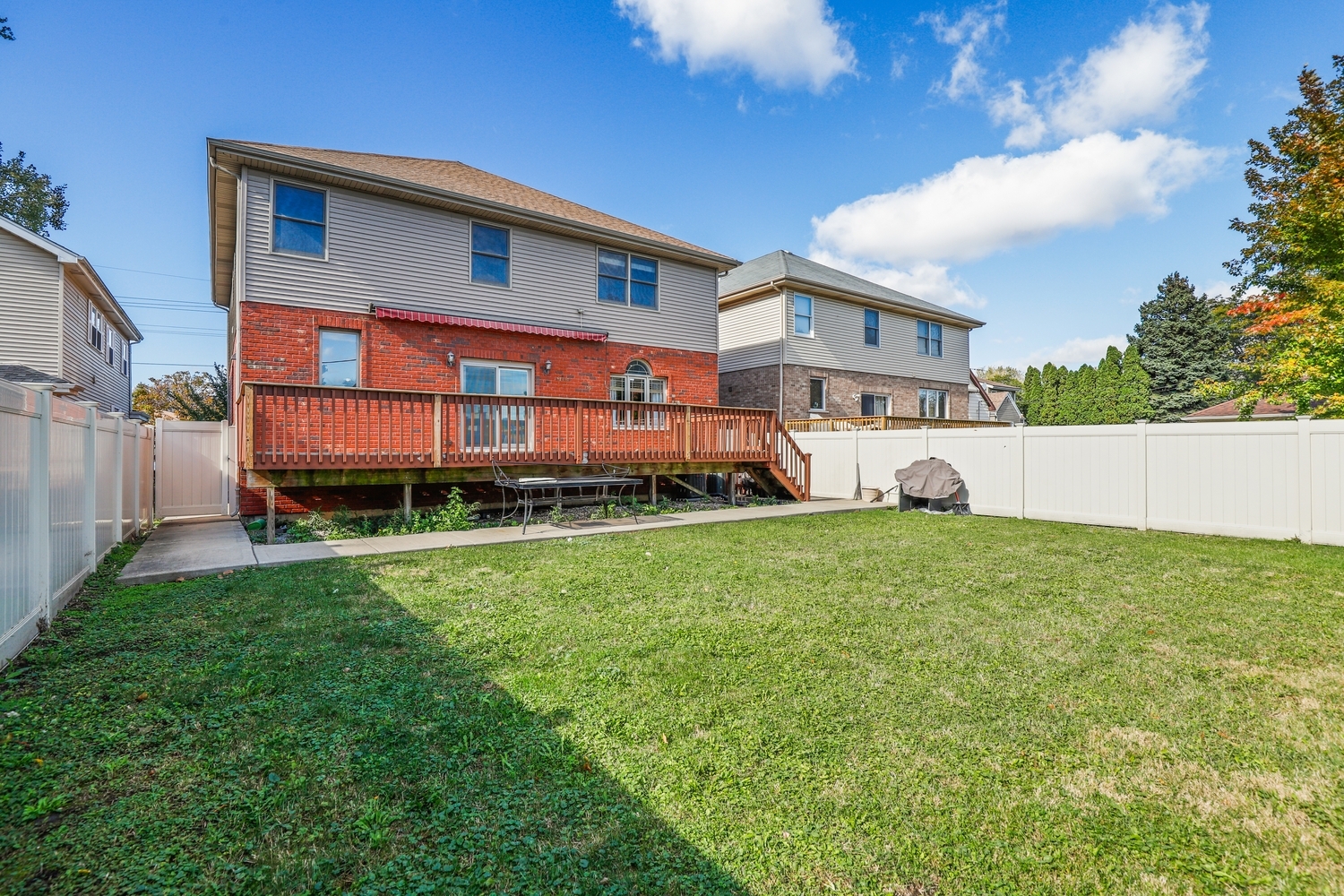 Roof, Siding, Gutters, Pella windows, are all new since 2021! The garage door was also replaced and the kitchen remodeled that same year! Step inside this beautiful brick two-story on a quiet street, designed for both effortless everyday living and grand entertaining! The main level boasts an open, airy feel with soaring 9-foot ceilings and newly refinished walnut hardwood floors that continue up the open staircase and into the second-floor hallway. The spacious combined living and dining area leads right into the gorgeous, granite kitchen, featuring a large center island, Stainless Steel appliances, and a bright breakfast area with direct access to the brand new 30’x12′ deck! This outdoor space is perfect for relaxing, featuring a retractable awning and overlooking the fully-fenced backyard. Relax in the adjacent Family Room, which offers a lovely focal point with its cozy gas fireplace. A dedicated first-floor office offers the flexibility to be used as a convenient fifth bedroom. Upstairs, the expansive Primary Suite is a true retreat with two walk-in closets and a luxurious private bath. You’ll also find three more generously sized bedrooms and a convenient second-floor laundry room. The entertainment space continues in the full, finished basement, complete with two additional bedrooms, a full bath with a walk-in shower, a large rec room, an exercise room, and plenty of storage. Enjoy a great location with easy access to all the amenities Oak Lawn has to offer!