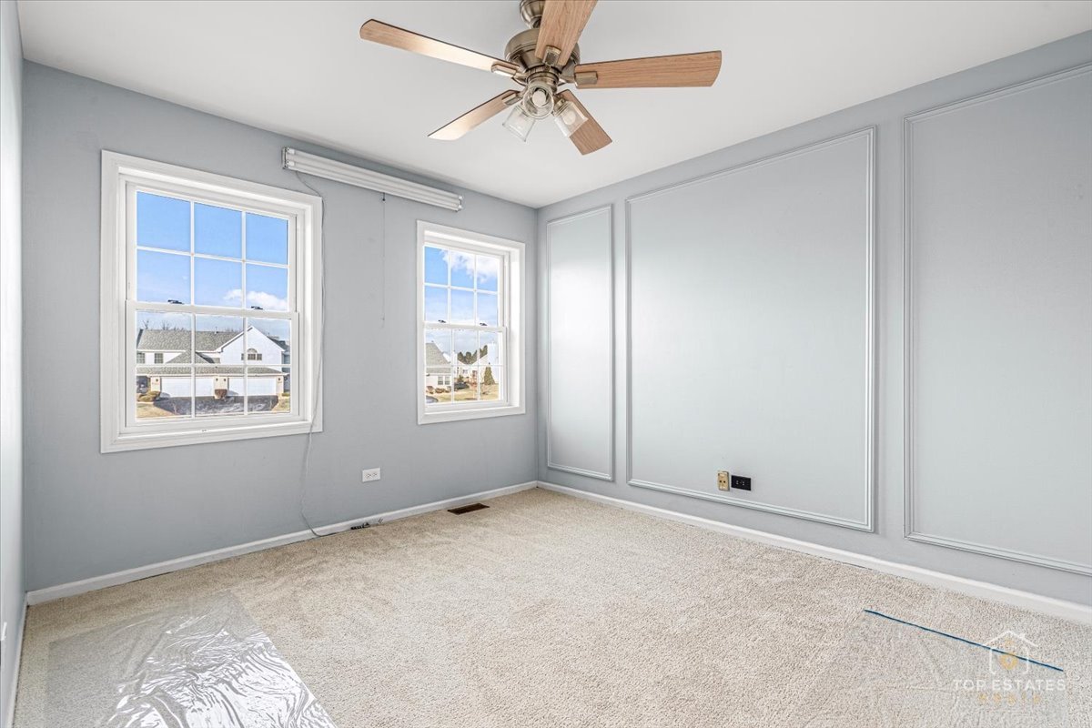 Beautifully updated 3 bed, 2.5 bath townhome in a quiet Orland Park cul-de-sac. Main level features wood laminate flooring, neutral tones, and a cozy fireplace. Updated kitchen offers brand-new quartz countertops, freshly finished cabinets, stainless steel appliances, breakfast bar, and access to the private patio and attached 2-car garage. Upstairs features new soft carpet, 3 spacious bedrooms, and 2 full baths. Primary suite includes vaulted ceiling, walk-in closet, and ensuite with double sinks, separate shower, and soaking tub. Walking path behind the home leads to shopping, dining, parks, and Centennial Park & Aquatic Center. Move-in ready and meticulously maintained!